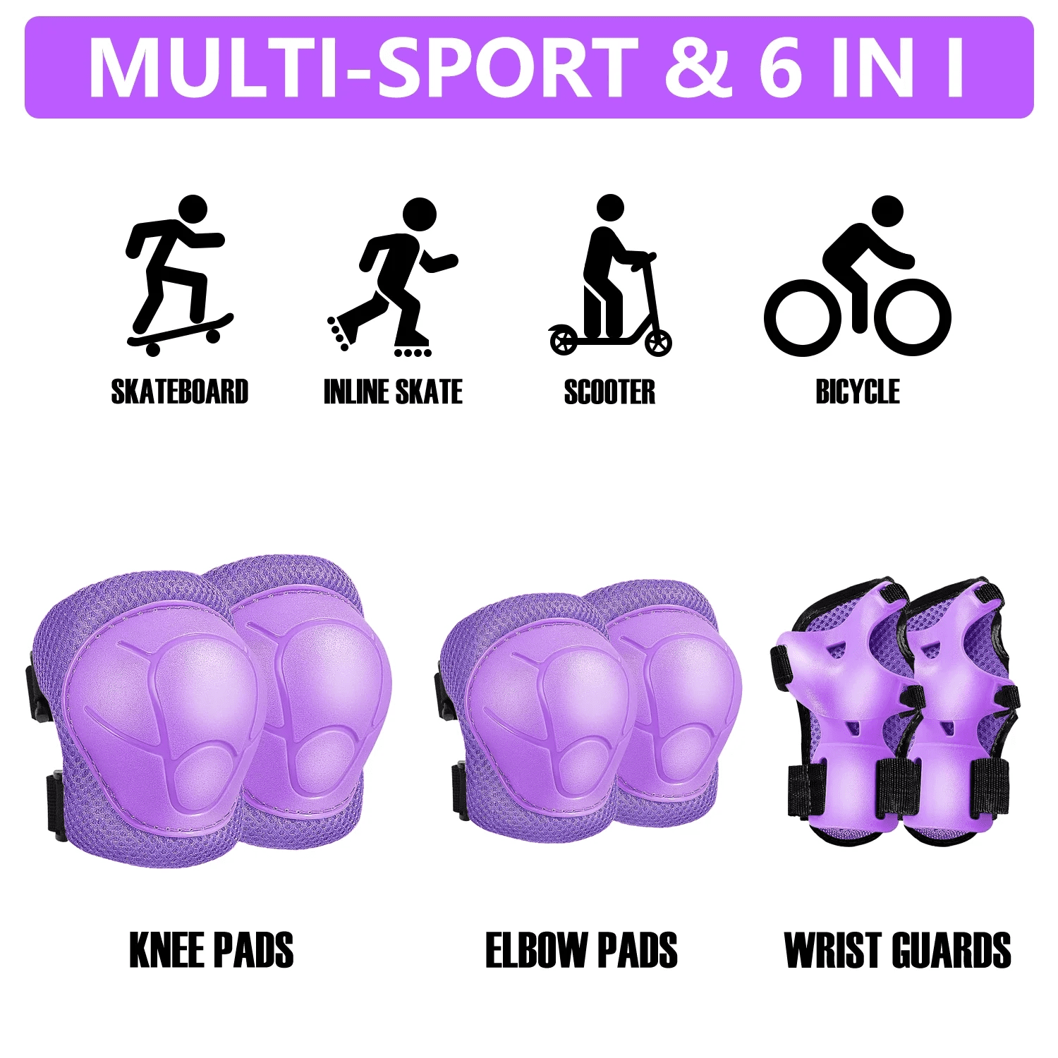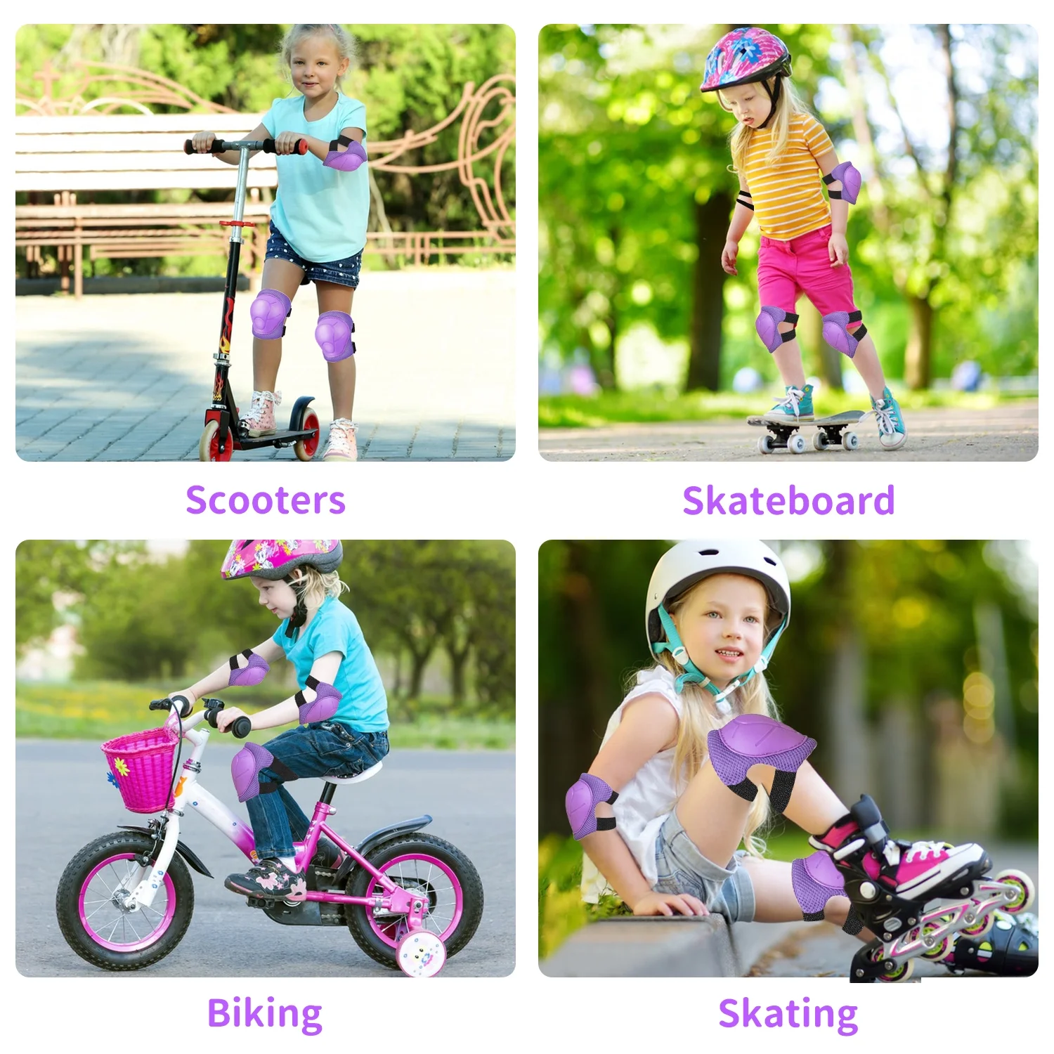 - Multifunctional Safety Gear: Our knee elbow pads with wrist guards are designed for kids sports safety protection especially for scooter, skateboard, riding bikes, bicycle, roller, biking, riding, skating, blading and other outdoor sports.