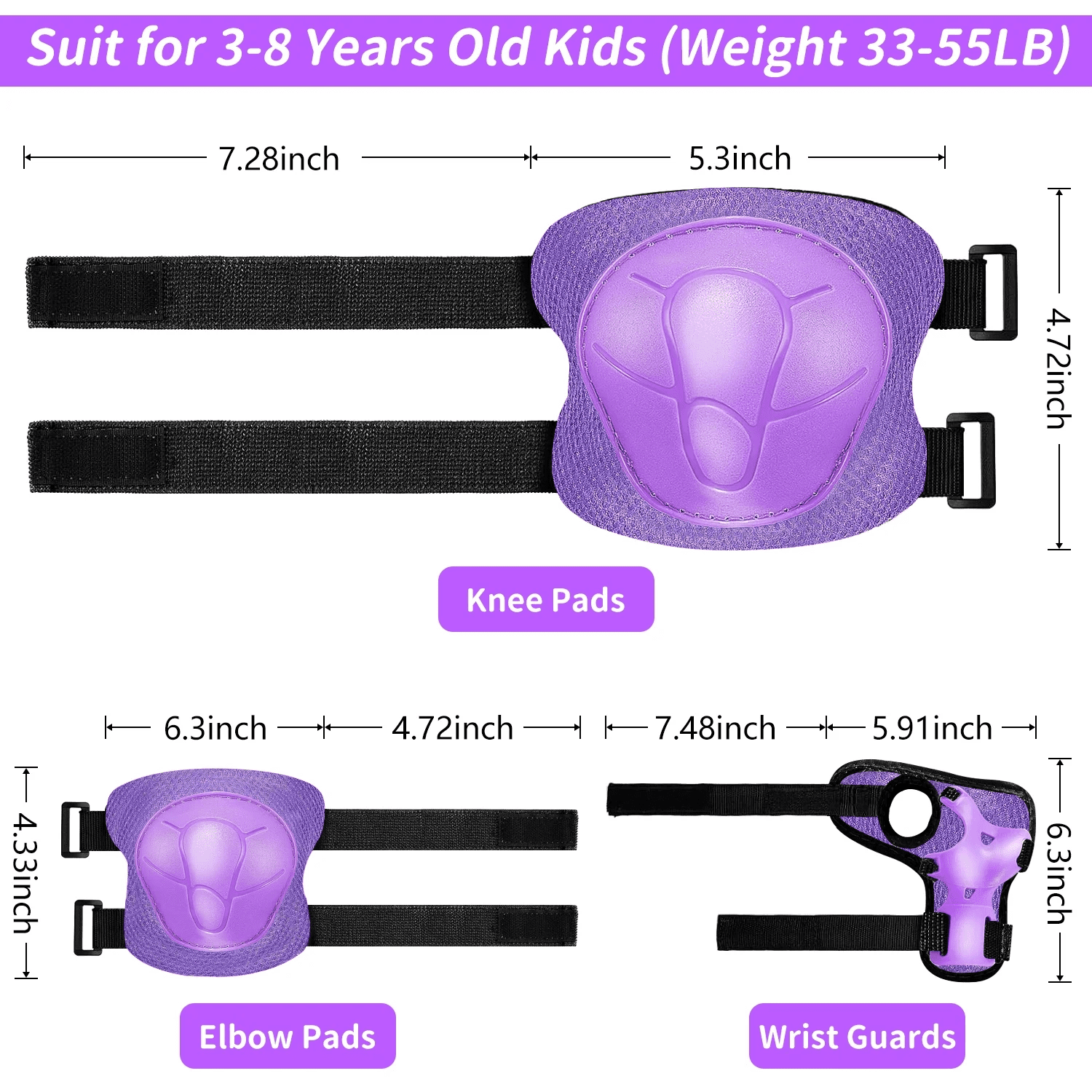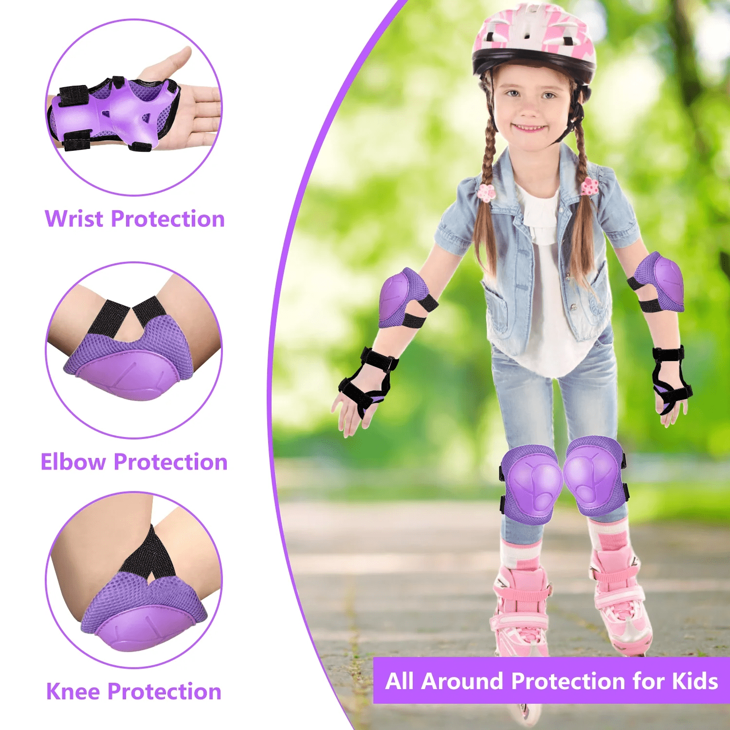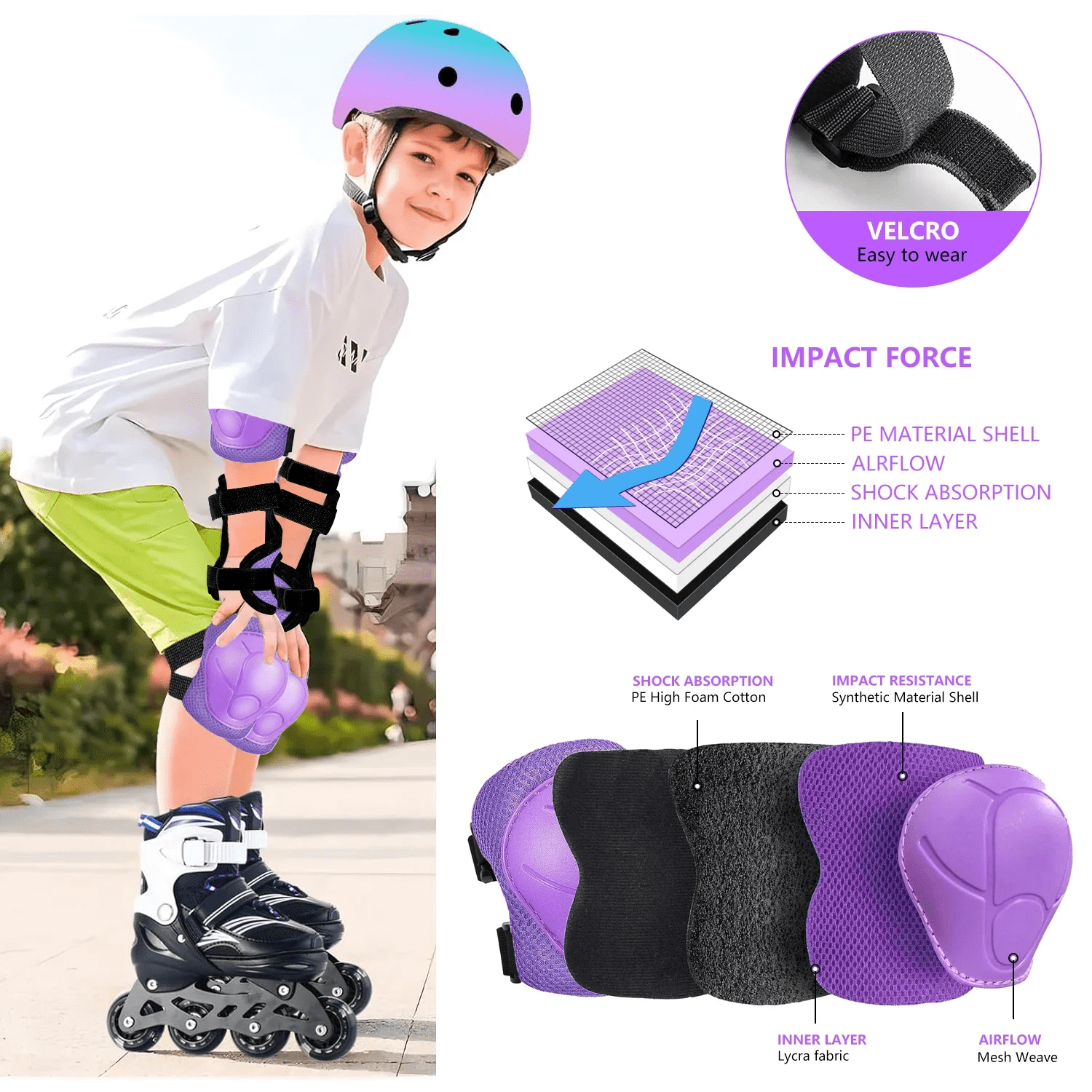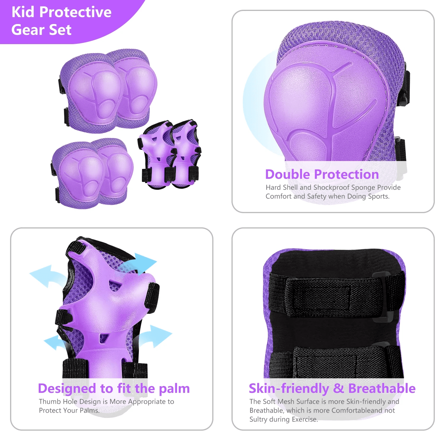 - Kids Protective Gear Set: Package includes 2 pcs wrist guards, 2 pcs knee pads and 2 pcs elbow pads. No need to worry about the children will get injured during sports, Complete protective gear set provide kids with all-round safety protection. (Helmet not included)