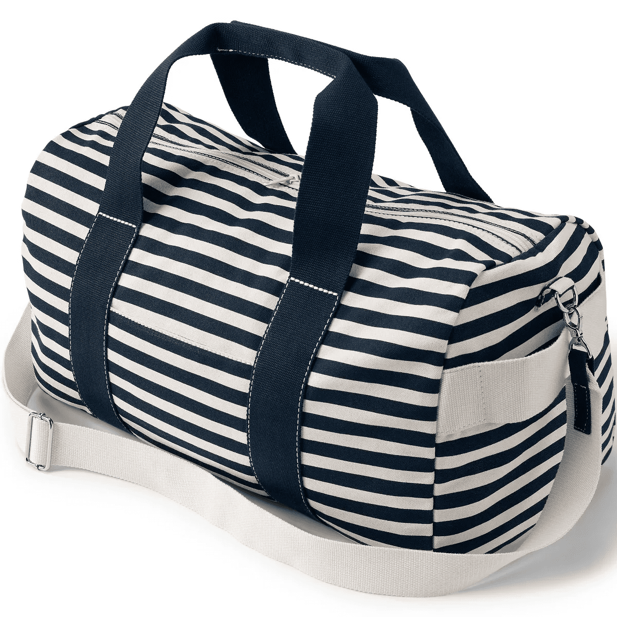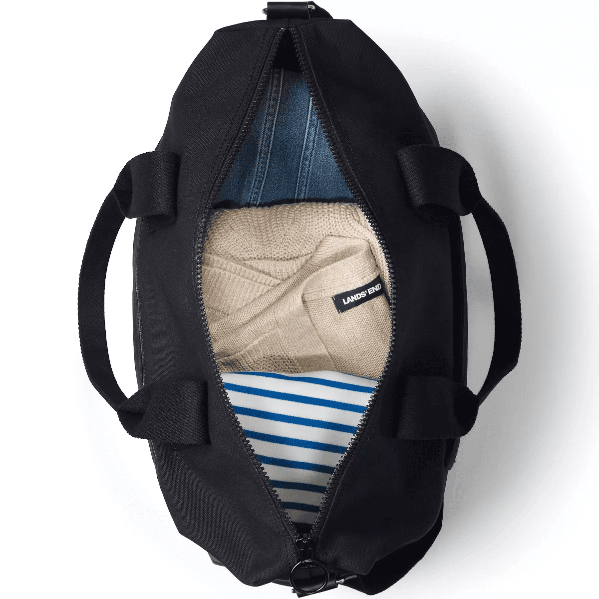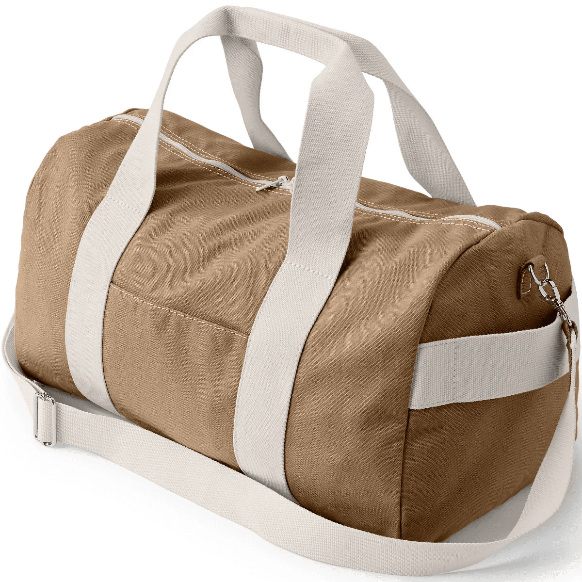 Designed for adventure our canvas weekender duffel bag is a true multitasker. Fill it with everyone’s swimsuits flip-flops and towels for a family trip to the beach or lake. Enjoy how easy it is to carry thanks to the long shoulder strap and reinforced handles. The rugged cotton canvas can withstand everything that comes your way whether it’s being crammed into an overhead compartment on a plane or getting tossed around. There’s a coated finish on the base that protects your things if it gets wet so you won’t end up with a soggy hoodie if you accidentally set this down in a puddle by the edge of the pool. Interior pockets provide a place to stash all of your little things including your phone house keys and sunglasses.