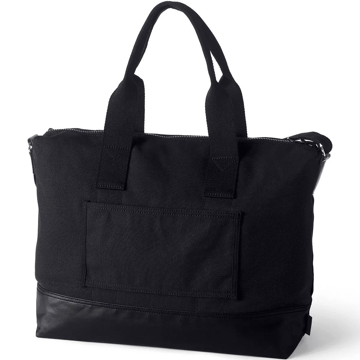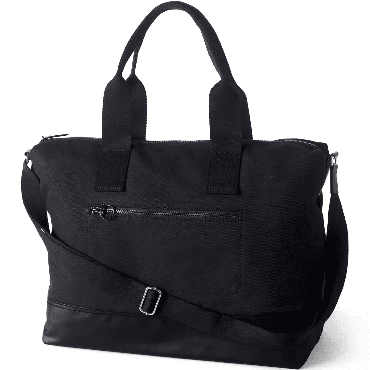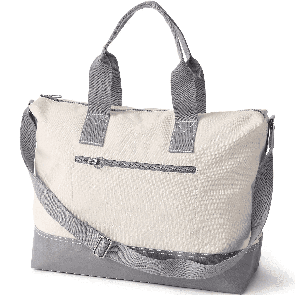 Designed for adventure our canvas weekender duffel bag is a true multitasker. Fill it with everyone’s swimsuits flip-flops and towels for a family trip to the beach or lake. Enjoy how easy it is to carry thanks to the long shoulder strap and reinforced handles. The rugged cotton canvas can withstand everything that comes your way whether it’s being crammed into an overhead compartment on a plane or getting tossed around. There’s a coated finish on the base that protects your things if it gets wet so you won’t end up with a soggy hoodie if you accidentally set this down in a puddle by the edge of the pool. Interior pockets provide a place to stash all of your little things including your phone house keys and sunglasses.