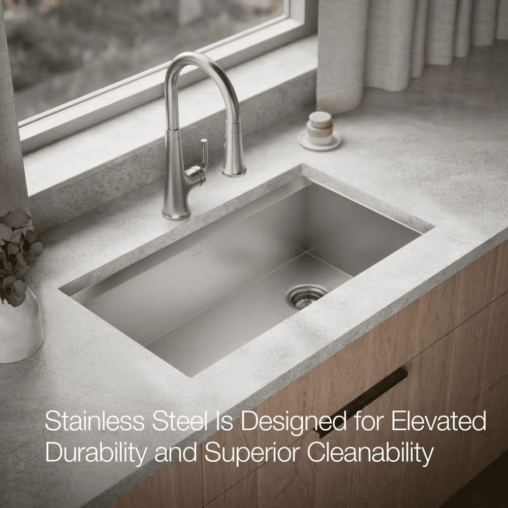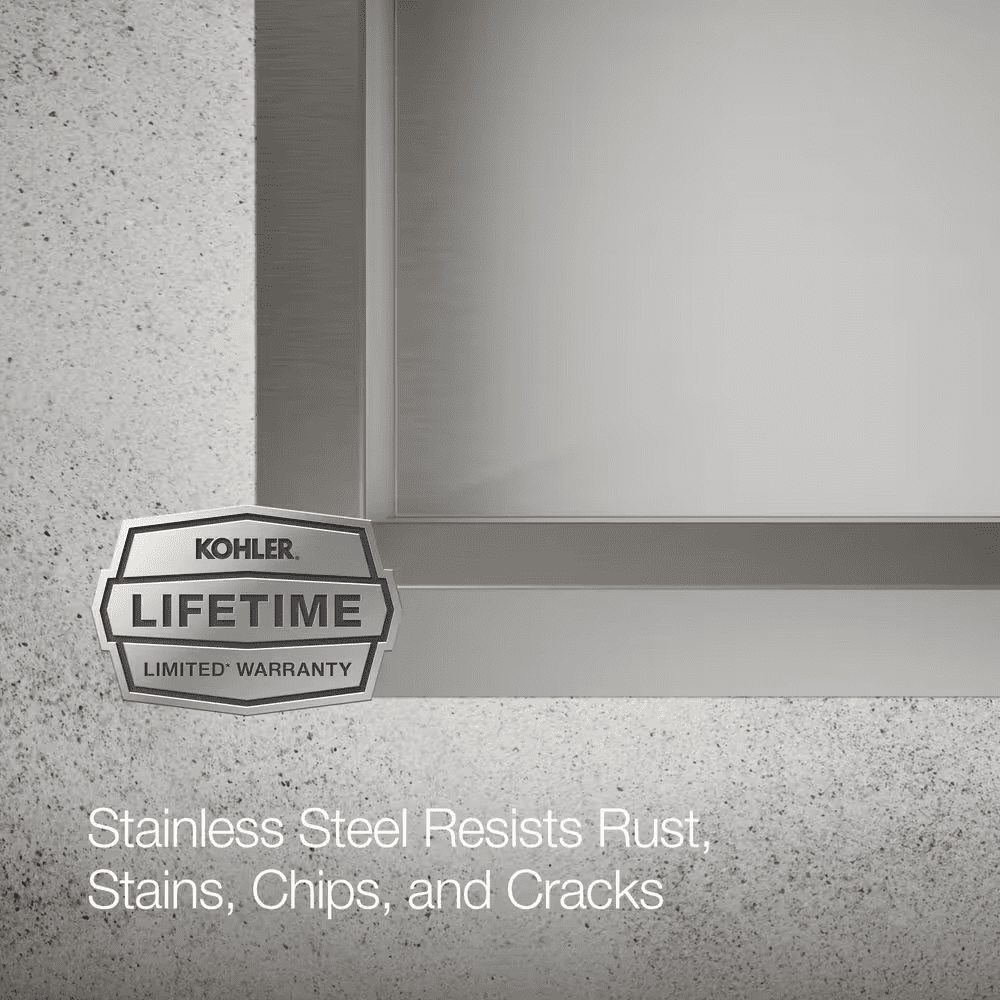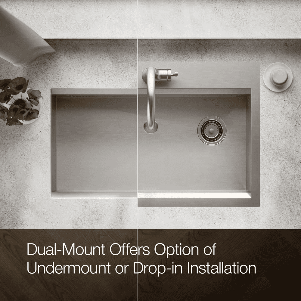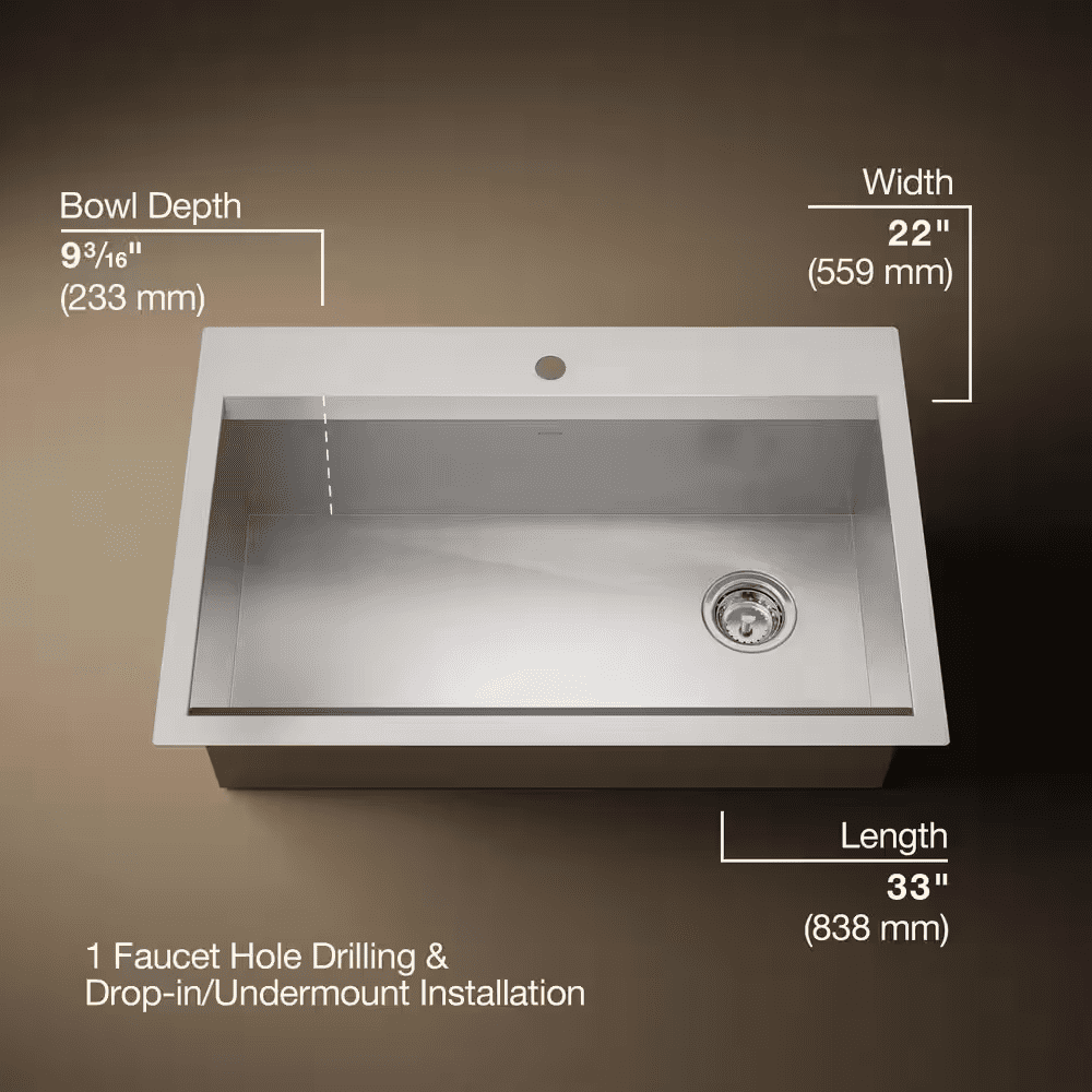 The Lassen stainless steel single-bowl workstation kitchen sink features sleek and streamlined elements that pair seamlessly with your modern decor. The elegant, beveled edge effortlessly directs water into the sink and is designed to smoothly slide accessories for a custom arrangement. This workstation sink comes complete with a drain and strainer, a beautiful bamboo cutting board, and colander set for all your cooking needs. It can be installed as a top-mount or undermount sink and features a sound-absorption system that significantly reduces disposal and dishwashing noise.