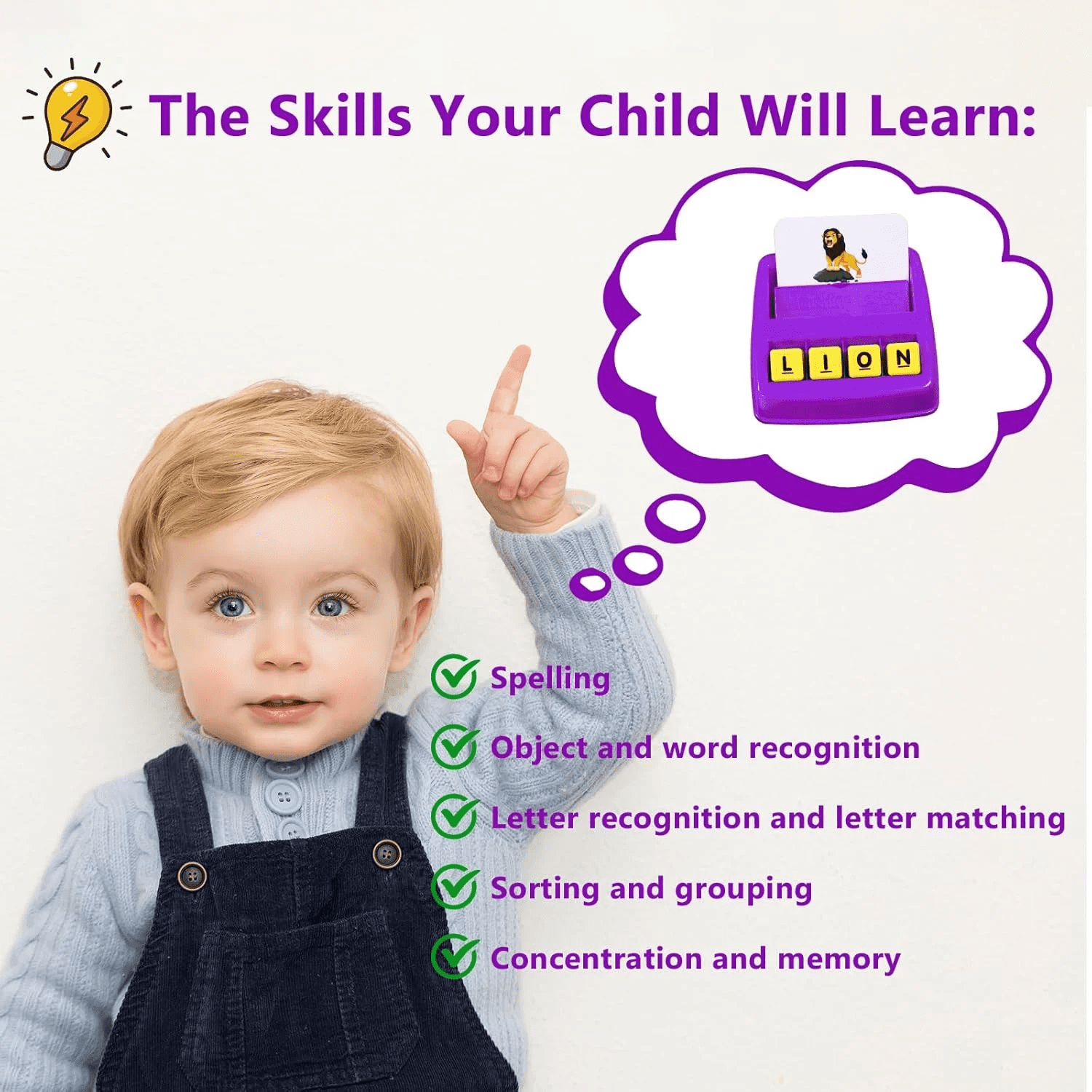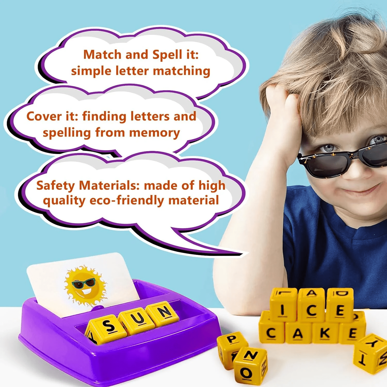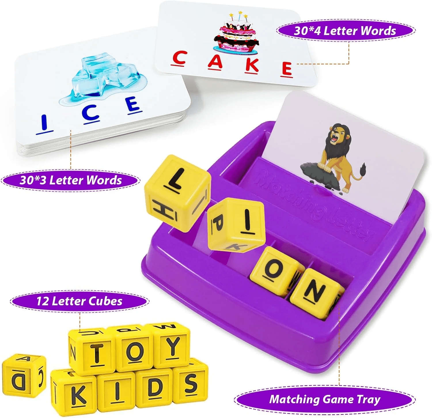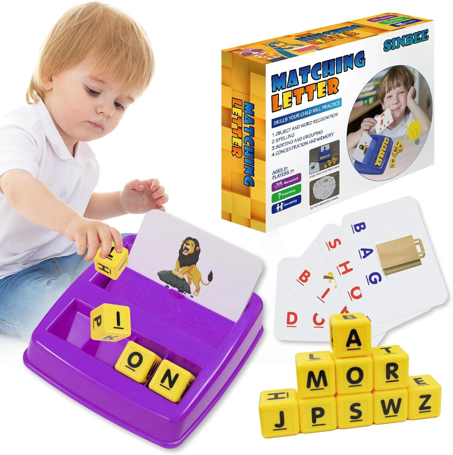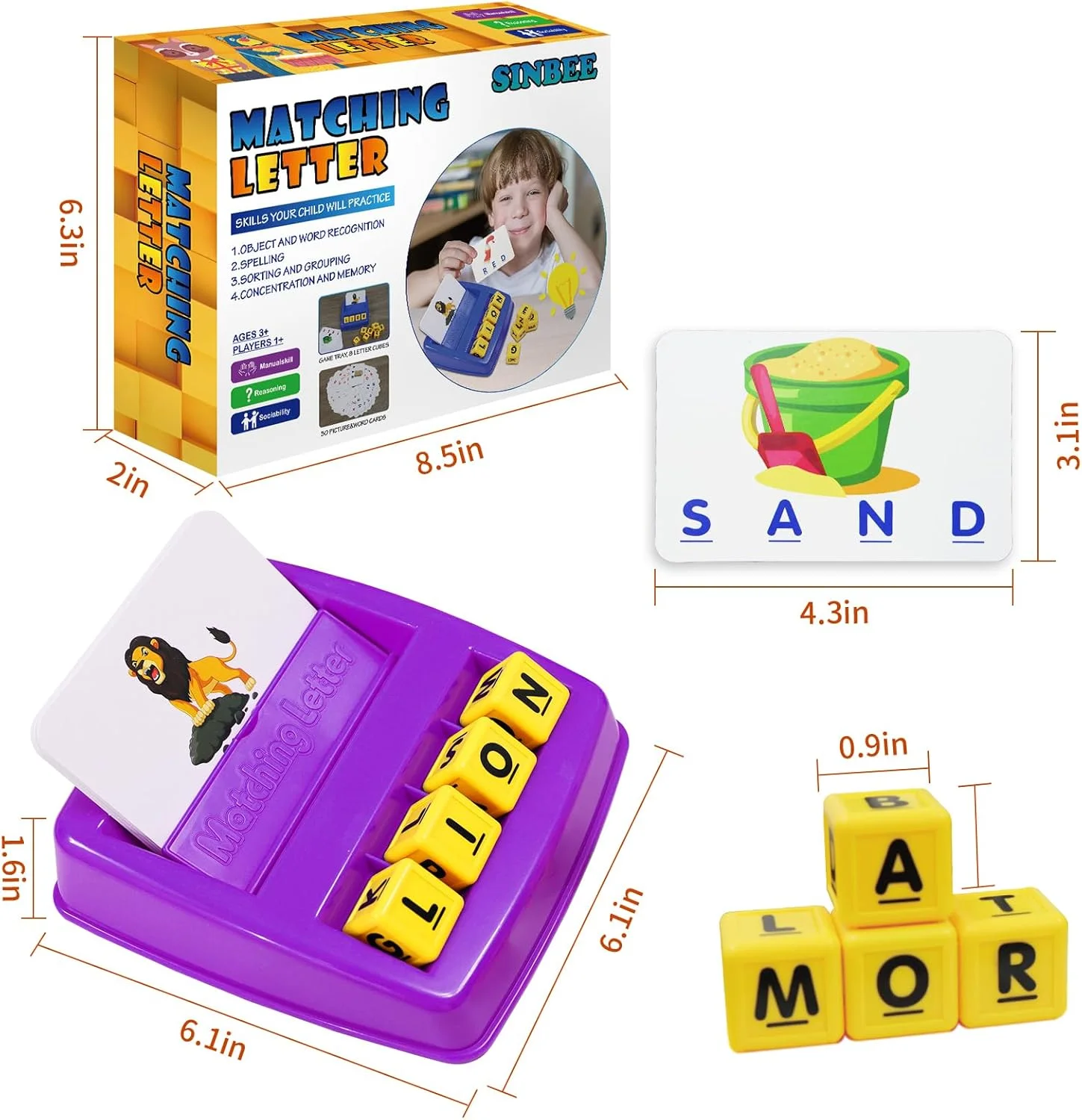Designed to be engaging and educational, our toy features colorful letter tiles and picture cards that challenge children to match letters with corresponding words and images. This fun and interactive game promotes letter recognition, spelling, and vocabulary,  all while encouraging hand-eye coordination, fine motor skills, and cognitive development.