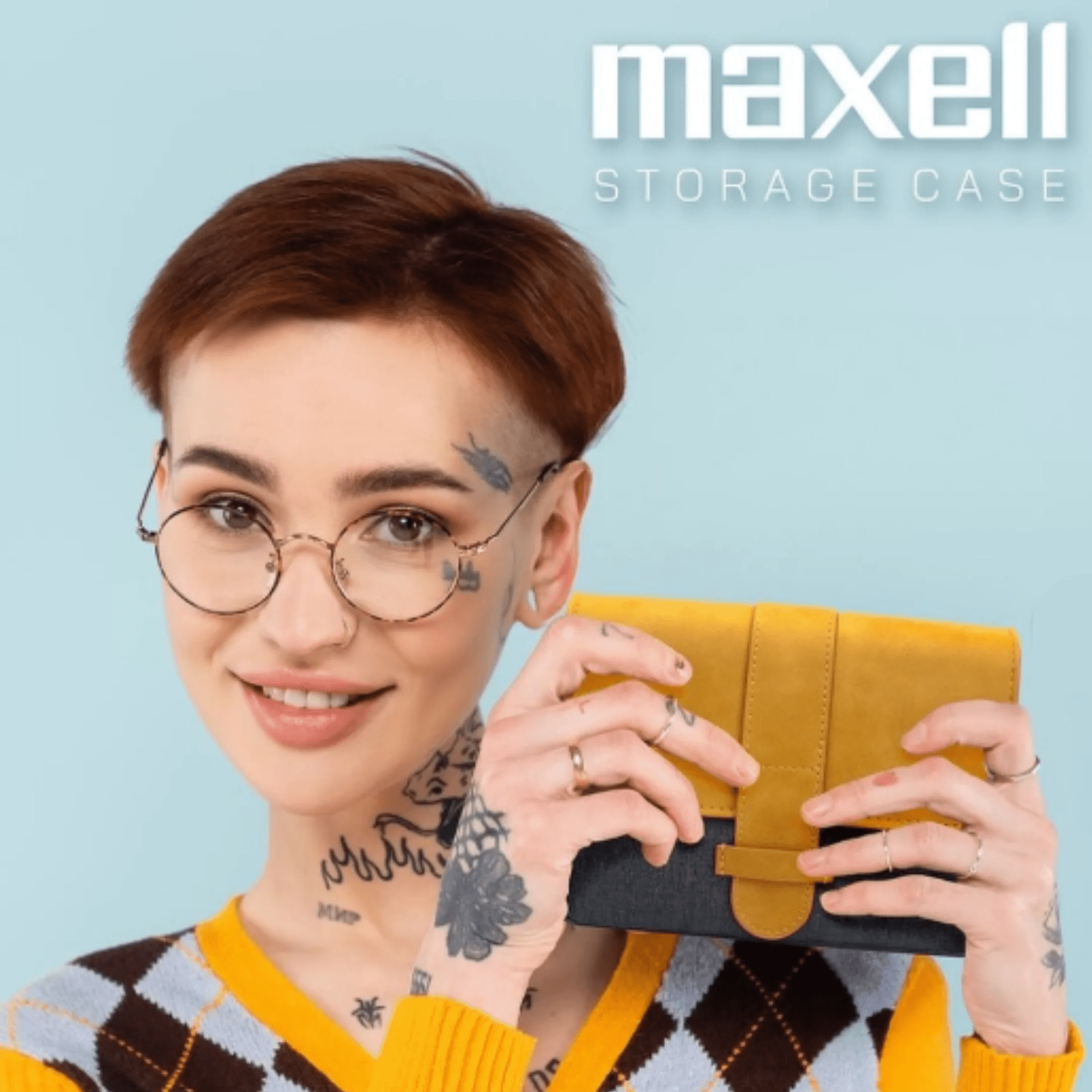 Maxell Electronics Storage Case – Leatherette. The Maxell Leatherette Travel Gear Organizer is perfect for all your smaller electronics. The waterproof fabric helps protect your accessories from water damage. The mesh compartments are perfect for earbuds, cables, flash drives, and all your accessories. The case also provides a larger zipper section for power banks, adapters, and more. 8.25″ x 6.5″ x 2″