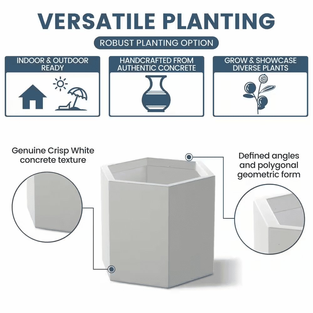 Sapcrete Modern Glass Fiber Reinforced Concrete Planters: Where Elegance Meets Practicality. Embrace the art of sophisticated gardening with Sapcrete’s array of concrete planters, large planters, tall outdoor planters, flower pots, and planters that can complement self-watering planters, where functionality meets aesthetic appeal. From the expansive ‘big pot’ designed for majestic trees to the ‘modern planters’ crafted for the demands of outdoor flora, our collection has been curated to suit every gardener’s vision, including the ‘extra large planter’ which provides even more space for your horticultural projects. Sapcrete’s commitment to eco-friendly practices is evident in every planter, including our ‘resin planters’ and ‘fiberglass planters,’ promising a green future with every purchase. Whether you’re seeking a rustic touch with our ‘weathered concrete planter’ or the sleek lines of our ‘modern planters for outdoor plants,’ our selection is designed to inspire and transform any space into a green sanctuary. With Sapcrete, you’re not just purchasing a planter; you’re investing in a piece of art that promises long-lasting durability and an uplifted ambiance for your living spaces. Experience the practicality of premium concrete, ‘faux concrete’, and ‘resin planters’, and transform your home into a haven of lush foliage and sophisticated design.