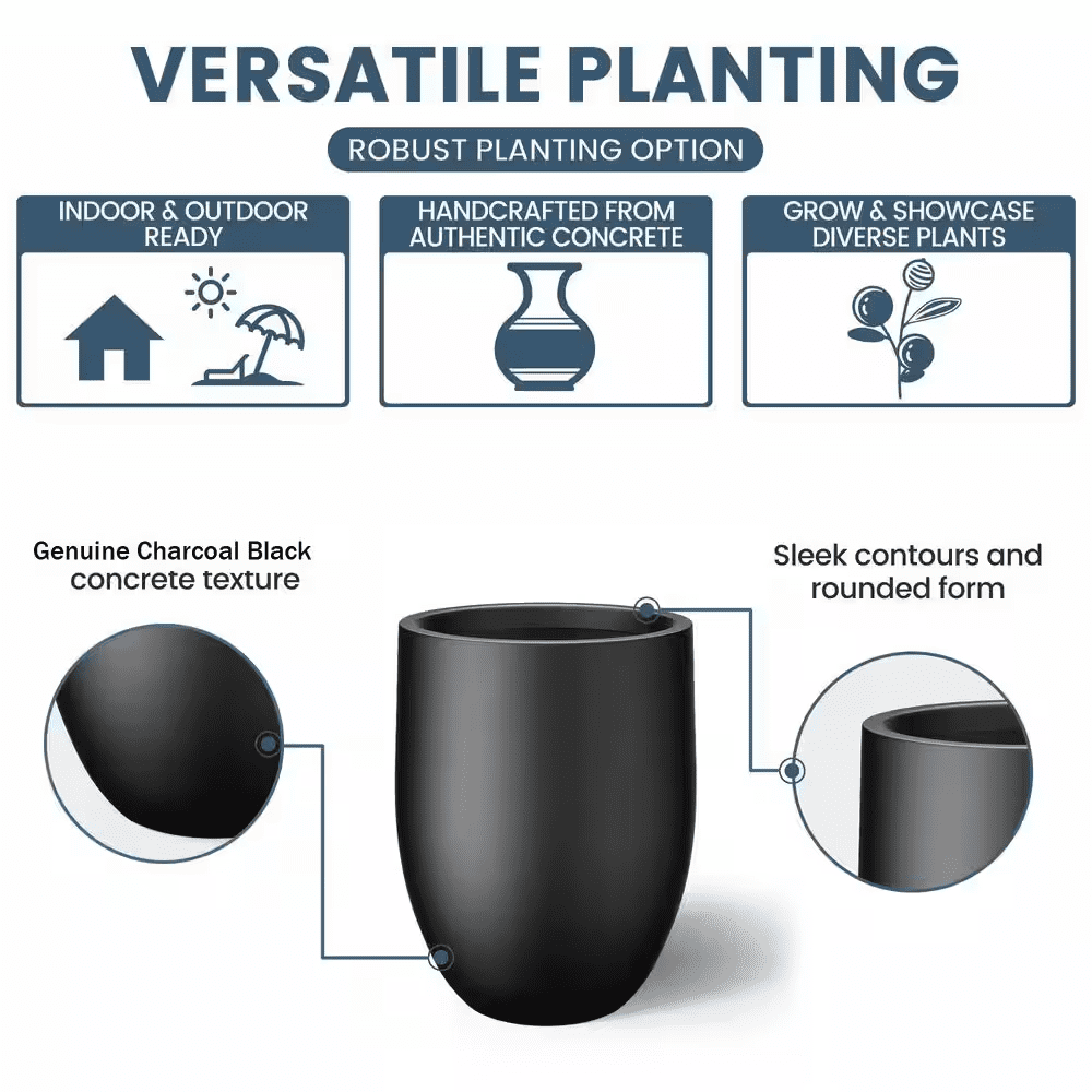 Sapcrete Modern Glass Fiber Reinforced Concrete Planters: Where Elegance Meets Practicality. Embrace the art of sophisticated gardening with Sapcrete’s array of concrete planters, large planters, tall outdoor planters, flower pots, and planters that can complement self-watering planters, where functionality meets aesthetic appeal. From the expansive ‘big pot’ designed for majestic trees to the ‘modern planters’ crafted for the demands of outdoor flora, our collection has been curated to suit every gardener’s vision, including the ‘extra large planter’ which provides even more space for your horticultural projects. Sapcrete’s commitment to eco-friendly practices is evident in every planter, including our ‘resin planters’ and ‘fiberglass planters,’ promising a green future with every purchase. Whether you’re seeking a rustic touch with our ‘weathered concrete planter’ or the sleek lines of our ‘modern planters for outdoor plants,’ our selection is designed to inspire and transform any space into a green sanctuary. With Sapcrete, you’re not just purchasing a planter; you’re investing in a piece of art that promises long-lasting durability and an uplifted ambiance for your living spaces. Experience the practicality of premium concrete, ‘faux concrete’, and ‘resin planters’, and transform your home into a haven of lush foliage and sophisticated design.