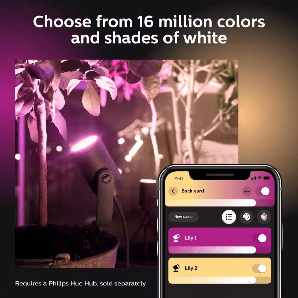Simply plug in and connect to your existing Hue hub to enjoy the 16 million colors available to enhance the beauty of your yard or create any ambiance you like. Voice control: Control your Philips Hue lights with your voice using Alexa, Apple HomeKit or Google Assistant. Pair it for home automation with your existing Nest products or Samsung SmartThings system.