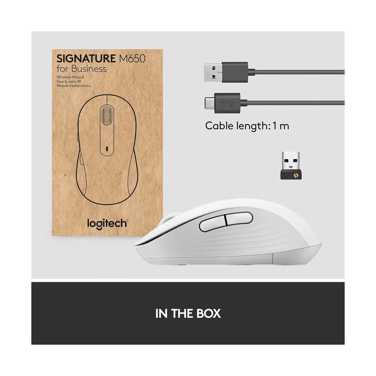 This Signature M650 wireless mouse is an upgrade from the expected. Its versatile technology, design, and functionality make up a business workforce tool everyone deserves. From the simple set up to precision scrolling, this mouse is designed for all day comfort with high productivity. The Logi Options + app allows customization to help streamline any repetitive tasks and increase output with greater efficiency. Connector/Port/Interface: Bluetooth; USB; Left/Right Hand Use: Right; Mouse Technology: Optical; Wired/Wireless: Wireless.