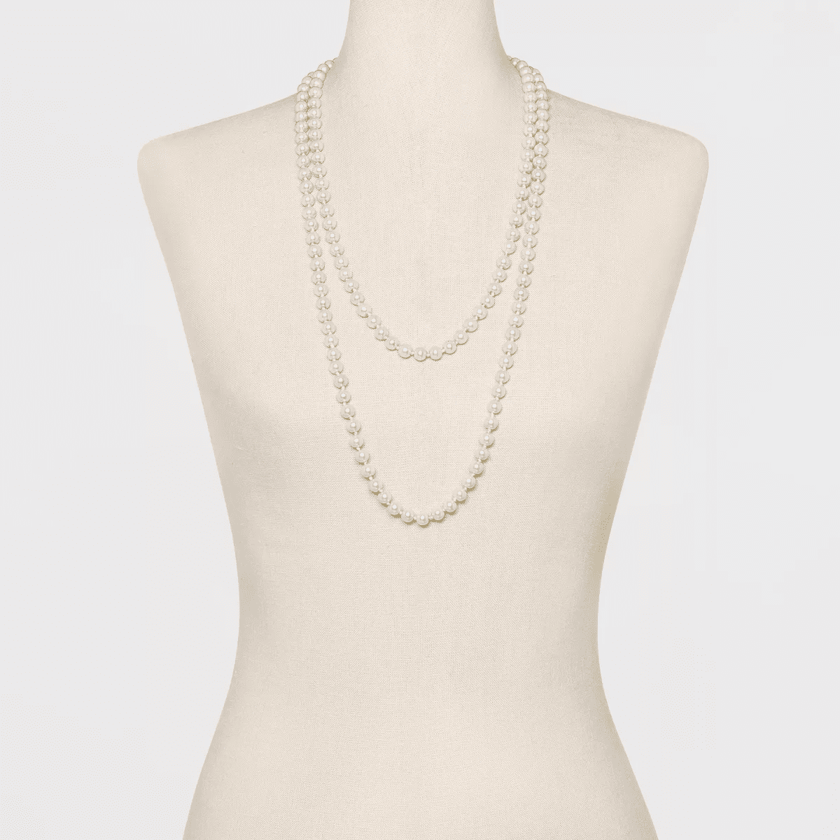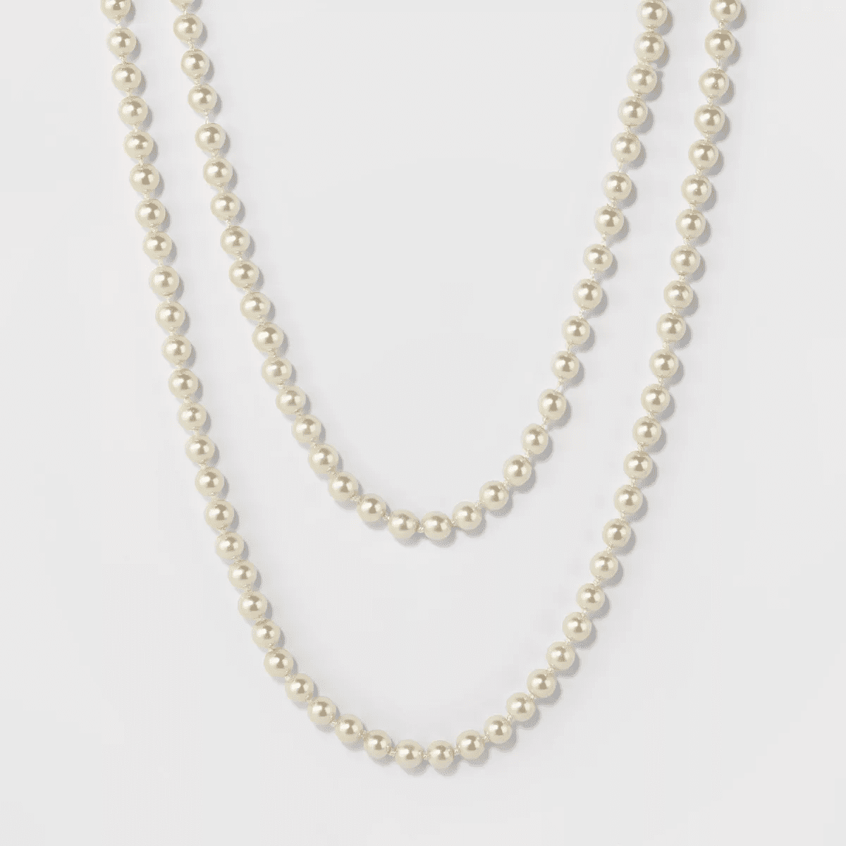 Add some sophistication to your outfit instantly with this Long Faux-Pearl Necklace from A New Day™. This layered pearl necklace features two strands, and looks great its own or paired with other jewelry. Dress this long pearl necklace up with a flowy blouse and pencil skirt or dress it down with a button-down chambray dress — however you style it, you’re sure to look chic.