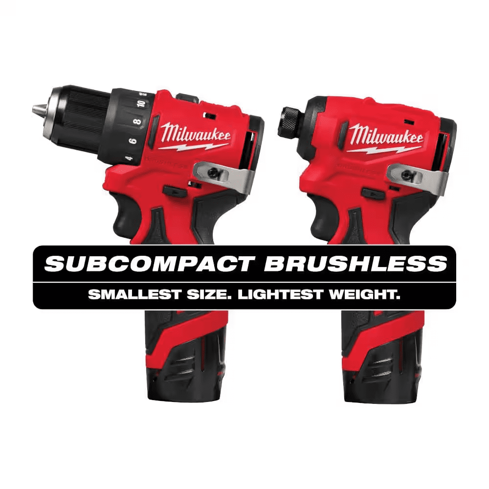 M12 12-Volt Lithium-Ion Brushless Cordless Subcompact Drill &Impact Driver Combo Kit with 3/8In Ratchet, Batteries & Bag
