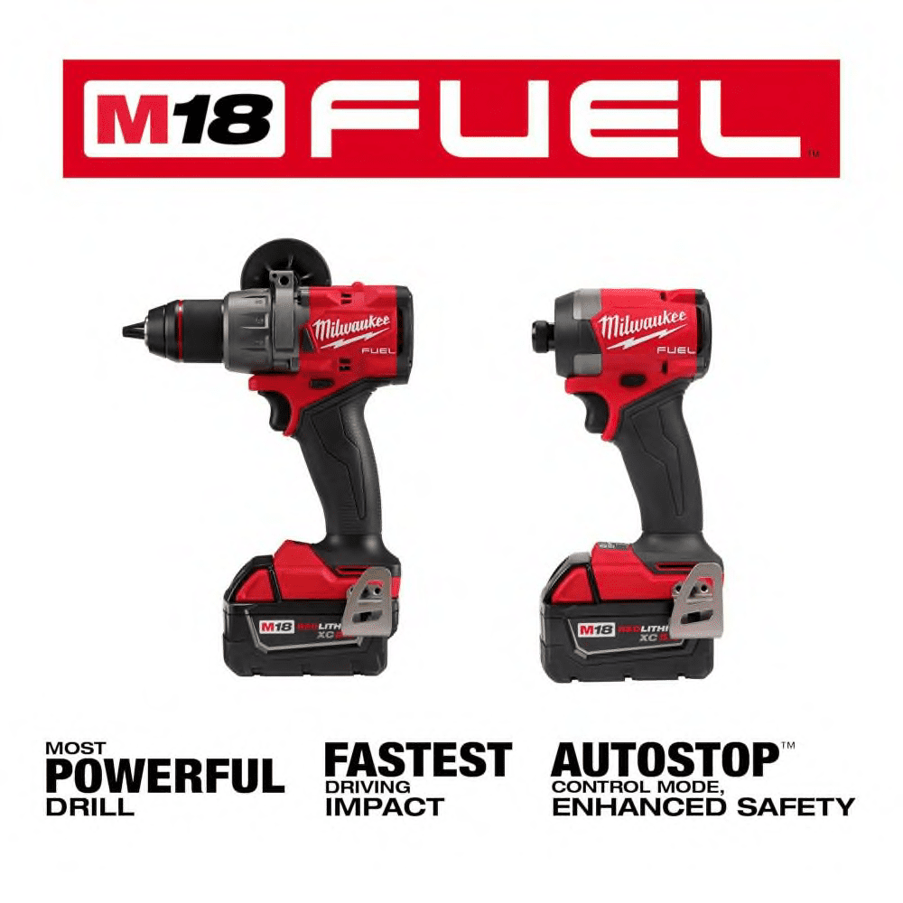 The MILWAUKEE M18 FUEL 2-Tool Combo Kit has the Most Powerful Drill, including AutoStop Control Mode for enhanced safety and the Fastest Driving Impact Driver. Includes an M18 FUEL 1/2″ Hammer Drill, M18 FUEL 1/4″ Hex Impact Driver, (2) M18 REDLITHIUM XC 5.0Ah Battery Pack, with an M18/M12 charger and carrying case. The M18 FUEL ½” Drill Driver is the Industry’s Most Powerful Drill and Most Compact solution. The POWERSTATE Brushless motor delivers the most power under load to complete 2-9/16″ Self-Feed holes in dense materials for increased productivity and capability. At only 6.9″ in length, this is the most compact drill in its class. The AutoStop Control Mode offers enhanced safety for the user by preventing over-rotation in a bind-up with the best reaction time in the industry. The M18 FUEL ¼” Hex Impact Driver is the Most POWERFUL and FASTEST DRIVING impact driver, featuring ULTIMATE TRIGGER CONTROL. The POWERSTATE Brushless motor delivers unmatched power for a full range of capabilities to complete the widest variety of applications. Increase productivity on the jobsite with the fastest driving speed without sacrificing power or control. REDLINK PLUS intelligence delivers ULTIMATE TRIGGER CONTROL by providing smooth acceleration for small fasteners to prevent stripping of screws or damaging of materials. The M18 FUEL 2-Tool Combo kit is part of the M18 system which is fully compatible with over 200+ solutions.