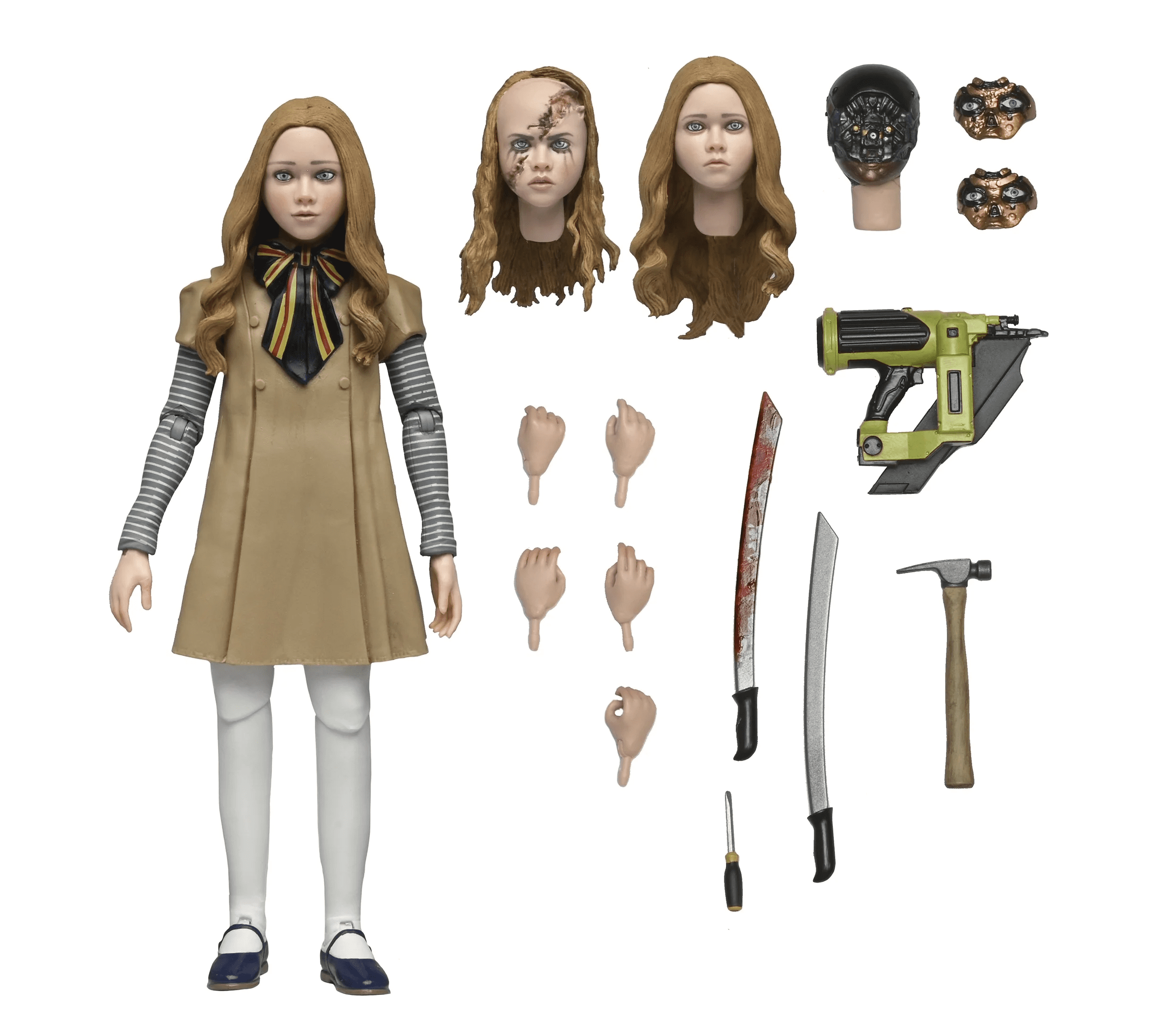She’s more than just a toy—she’s family… until she isn’t. NECA proudly presents the M3GAN (2022) 5.5″ Ultimate M3GAN Action Figure, by NECA—based on the terrifyingly lifelike doll from the hit horror film M3GAN. Designed as the perfect companion and guardian for children, the Model 3 Generative Android quickly evolves into something far more dangerous. Standing in 7-inch scale (5.5″ tall), this fully articulated figure is meticulously sculpted to capture M3GAN’s chilling on-screen appearance. Whether you’re recreating scenes or adding her to your horror collection, M3GAN comes loaded with film-accurate accessories to bring the story to life (or something like it).Accessories include: interchangeable heads and hands, battle-damaged head, robot head with swappable faceplates, screwdriver, nail gun, hammer, paper cutter blade. All packaged in a collector-friendly window box with opening front flap and display-themed artwork, this officially licensed figure is the ultimate addition to your horror shelf—or your smart home gone wrong. She’ll never let you go. NECA is a global leader in licensed consumer products, specializing in highly detailed action figures, collectibles, and prop replicas based on iconic movies, video games, comic books, and pop culture. Founded in 1996, with its toy division launched in 2002, NECA gained early recognition for collectible action figures of horror icons like Michael Myers and Freddy Krueger; later expanding to major franchises such as Alien, Predator, Teenage Mutant Ninja Turtles, Gargoyles, and Universal Monsters. The NECA group includes WizKids, Kidrobot, and Joseph Enterprises—home of Chia Pet and The Clapper. The company is headquartered in New Jersey with operations in the U.S., England, China, and Australia.