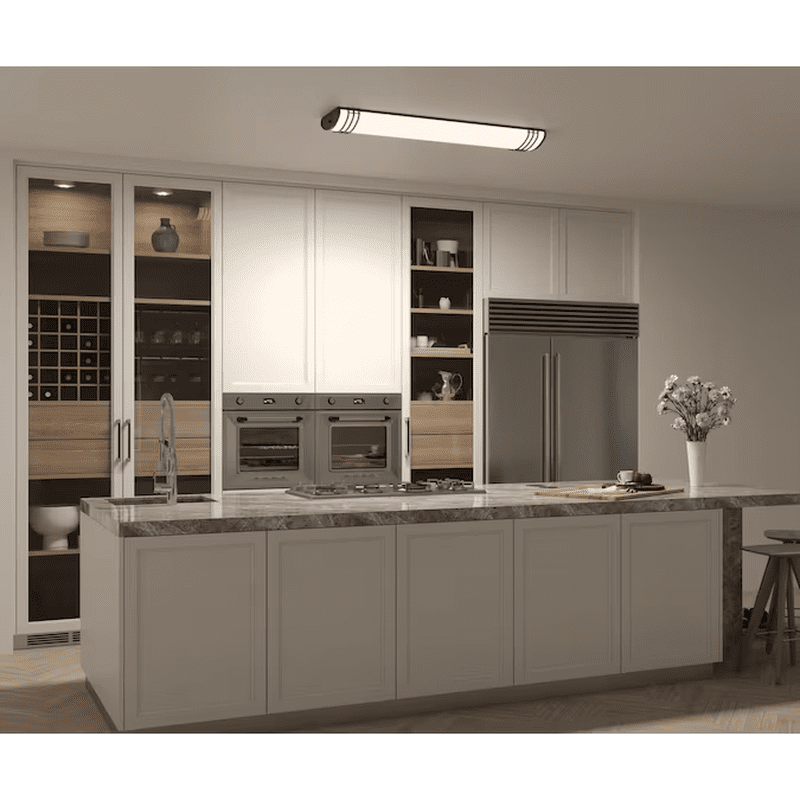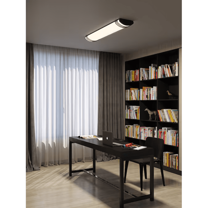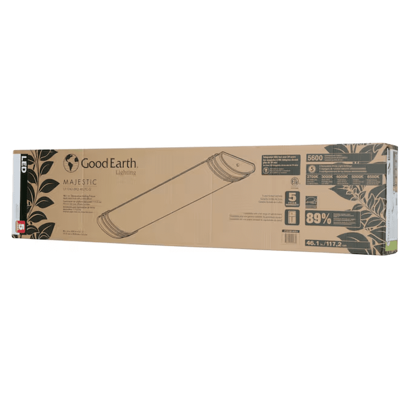 Add elegance and ambience to your home with Good Earth Lighting’s Majestic Matte Black 5600-Lumen Integrated LED Flush Mount Ceiling Light. The light is made with a durable steel frame, metal end caps, and a frosted white polycarbonate lens. With 5 selectable white light color temperatures, this ceiling light is a perfect fit for any space, such as one’s kitchen, living room, bedroom, hallway, basement, or garage. This fixture provides a light output of 5600 lumens using 55 watts and is dimmable down to 10 percent. The LEDs have an estimated lamp life of 50,000 hours and never need to be replaced. Easy to install with direct wire one-person installation with Simply Quick™.