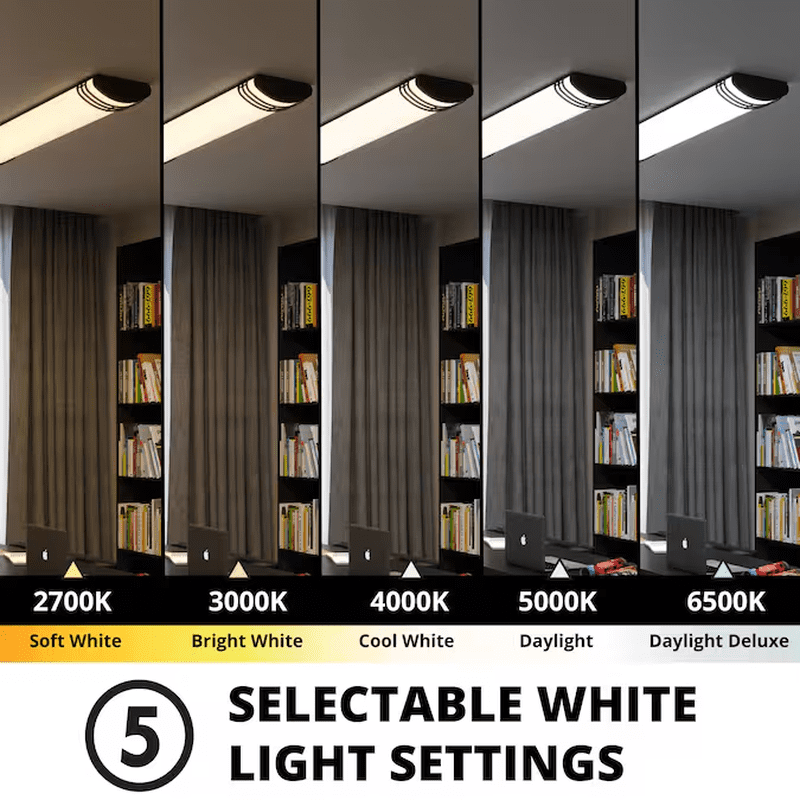 - Five easy-to-customize light options: 2700K Warm White, 3000K Soft White, 4000K Cool White, 5000K Daylight, and 6500K Cool Daylight