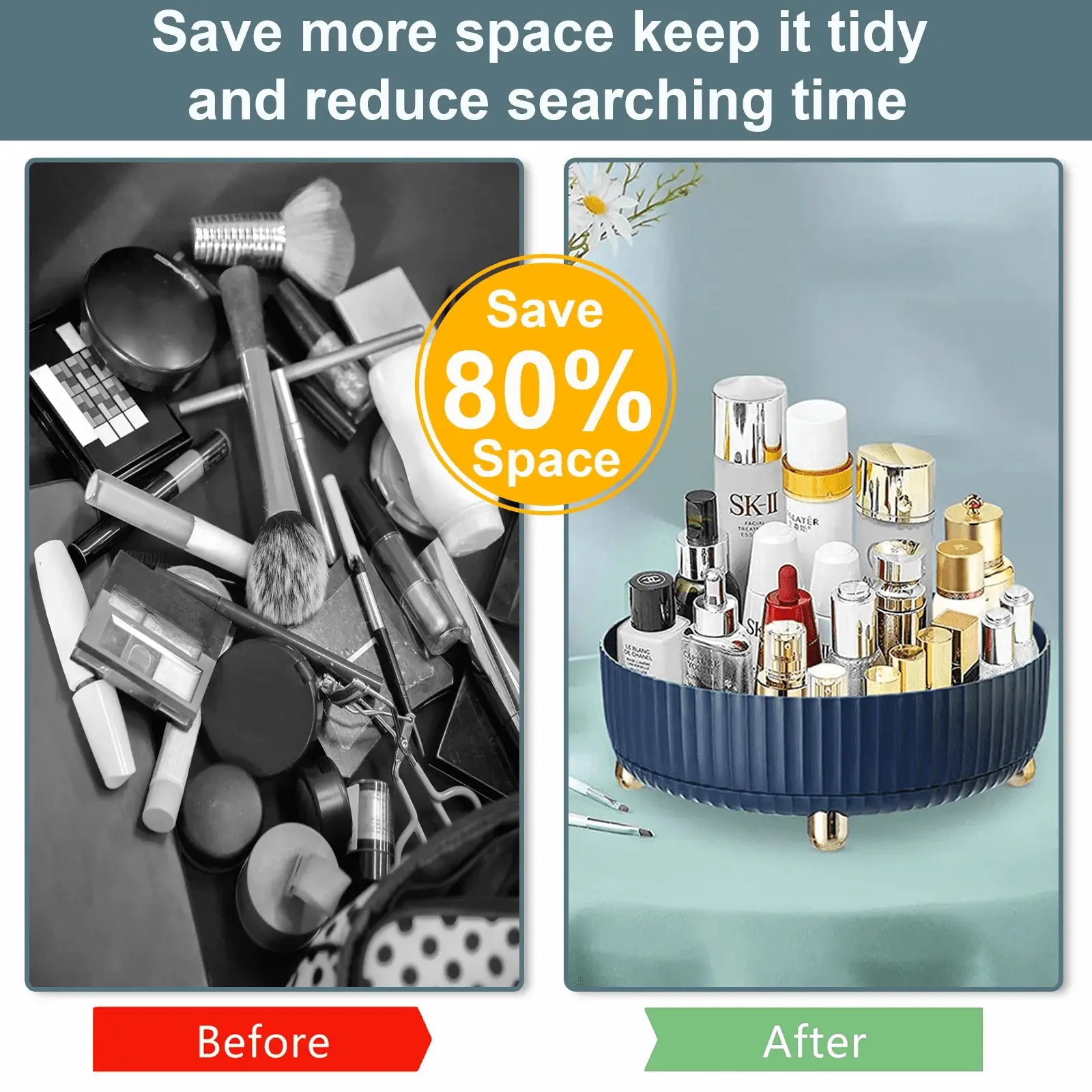The 360° rotating makeup perfume organizer is specially designed for women. It can perfectly organize and store your cosmetics including lipsticks, lipstick, nail polish, makeup brushes, cheek colors, eyebrow pencils, foundation sticks, beauty gadgets, necklaces, rings and more. Not only that it can also hold food, spices, fruits and everything else you want to put in it.