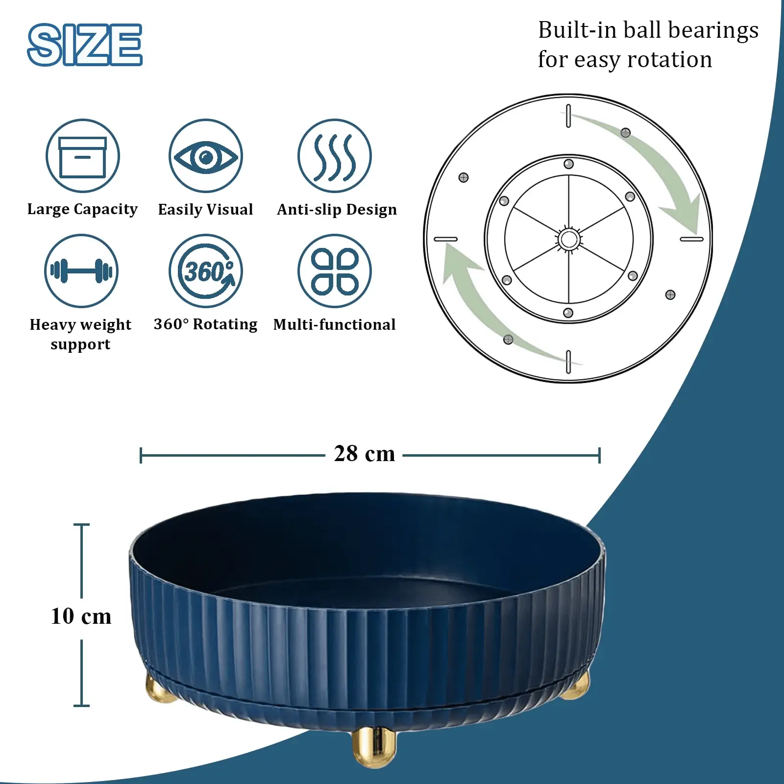 - 【Widely Use】- Use this multi-functional 360 rotating spinning organizer to store spices, spices, snacks, fruits, cosmetics, perfumes and more. Perfect for your kitchen table, pantry, and cabinet countertops. It’s also great for your bathroom, office, cabinets or dresser. Keep your desk, kitchen or dressing table organized with this versatile storage tray.