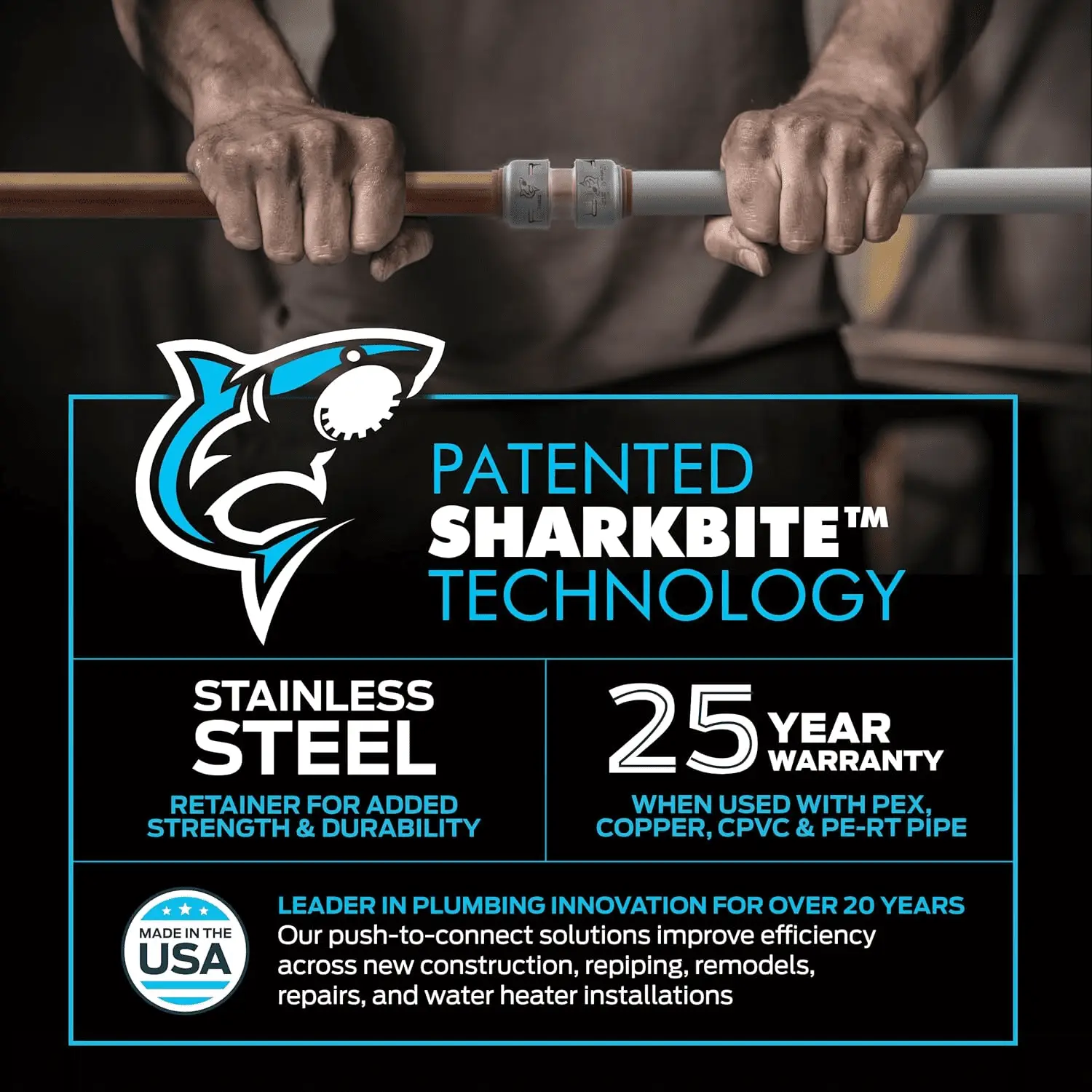 - FAST AND EASY INSTALL: SharkBite Max push-to-connect brass pipe connectors are perfect for making easy connections between two pieces of PEX, copper, CPVC, PE-RT and SDR-9 HDPE pipe in any combination. No need for soldering, glue, or additional tools; pipe connector can be installed in wet lines