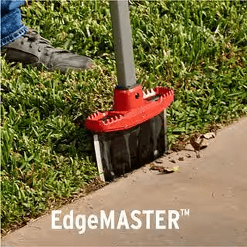 Edger to trim sidewalks and create borders for gardens or flower beds. Ribbed blade is self-sharpening and long-lasting. Anti-slip footplate provides stability and all-metal construction provides added durability.