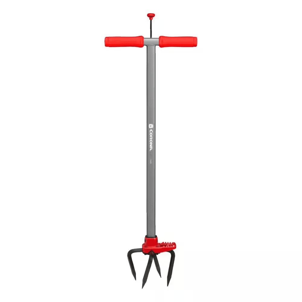 - Self-sharpening 9″ tines easily turn and aerate soil