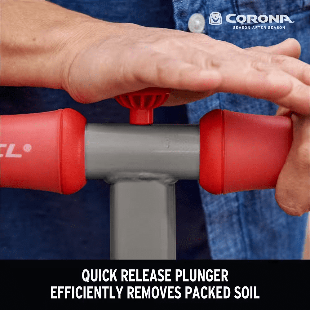 - Quick-release plunger expels dirt and mud clots from cultivator