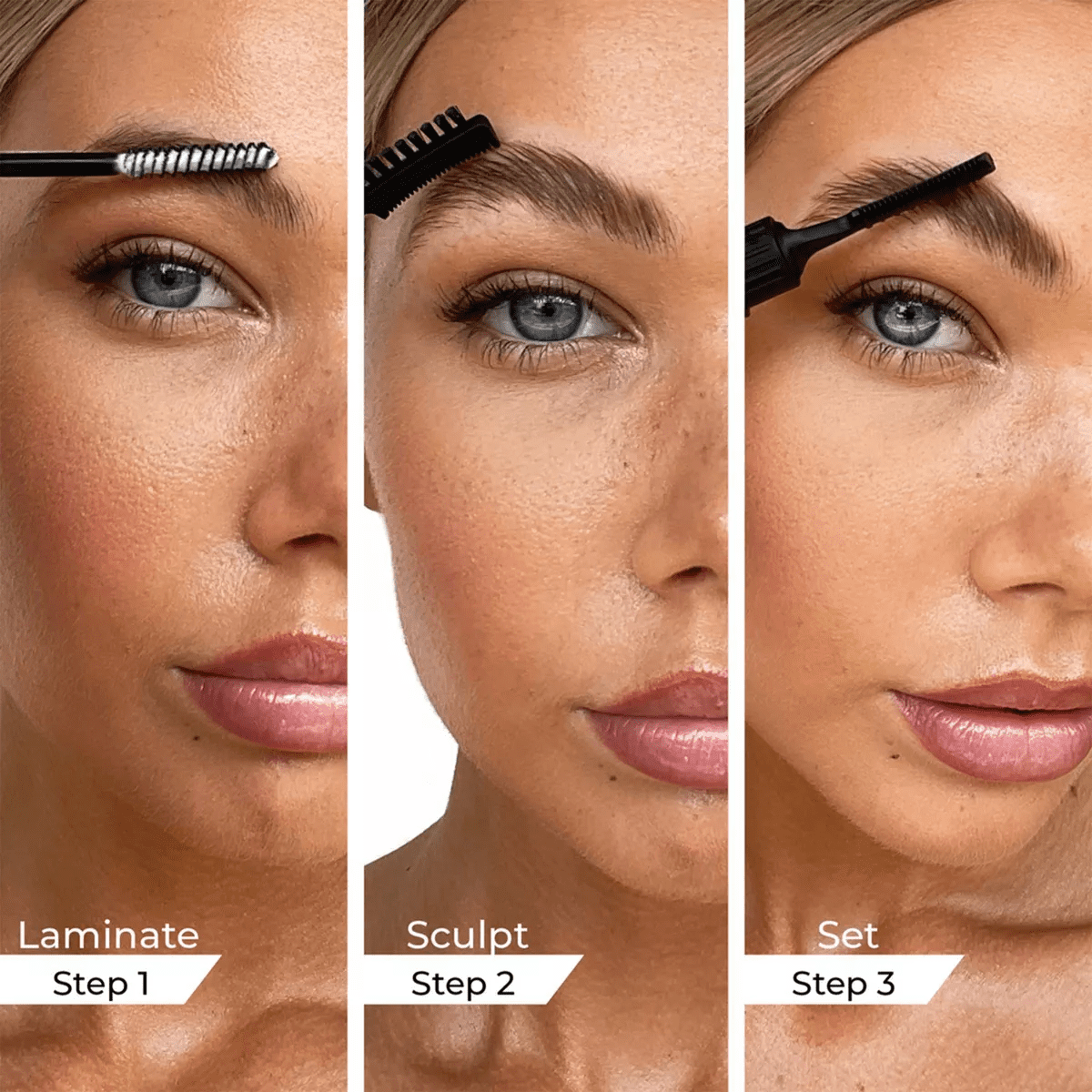 MCoBeauty BROW LAMINATE SCULPT & SET is the ultimate fusion of gel and wax that helps to style your brows. Use the spoolie brush to apply the lamination formula, which contains Aloe Vera, Glycerin, and Copernica Cerifera Wax. Then use the double-sided comb and brush to shape your brows and create your favorite brow look.