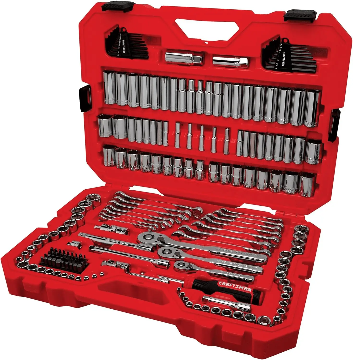 The 189 pc. 1/4-in., 3/8-in., and 1/2-in. Drive Mechanics Tool Set is equipped with low profile 72-tooth ratchets with 5° arc swing and up to a 25% thinner head* that helps deliver greater access in confined spaces. Packed with a broad assortment of 6-point and 12-point sockets, combination wrenches, and drive tools in a durable blow mold case. The case is constructed with metal hinges and designed to fit into CRAFTSMAN metal storage boxes for easy organization. Perfect as an addition to your current tool collection or as a starter set. Proudly backed by a Full Lifetime Warranty. *1/4” DR and 3/8” DR Only As Compared To CMMT81747, CMMT81748, & CMMT81749