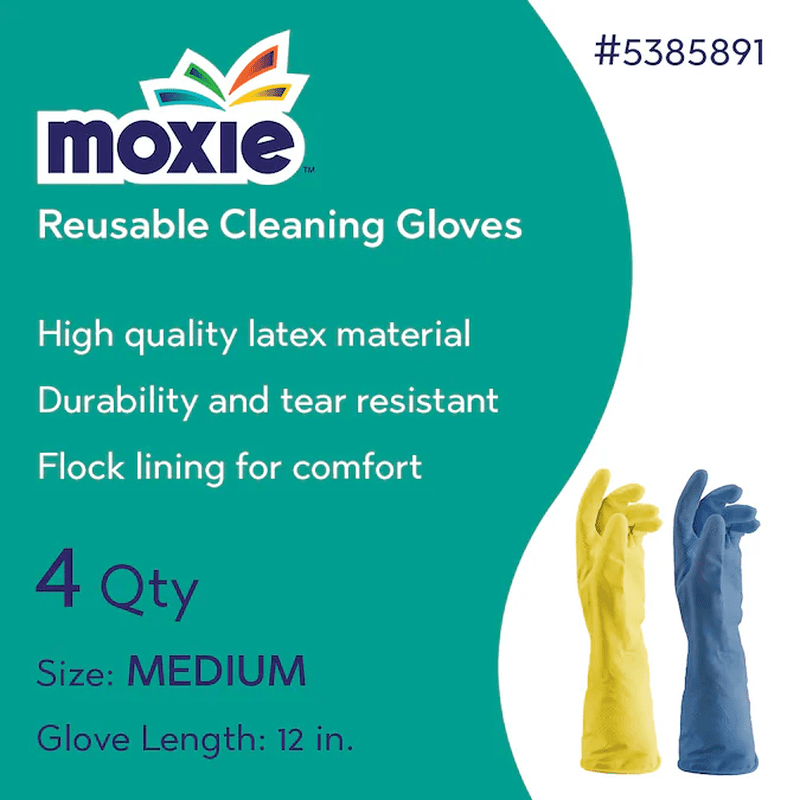 Medium 4 -Count Embossed -Grip Latex Reusable Cleaning Gloves 2 -Pairs