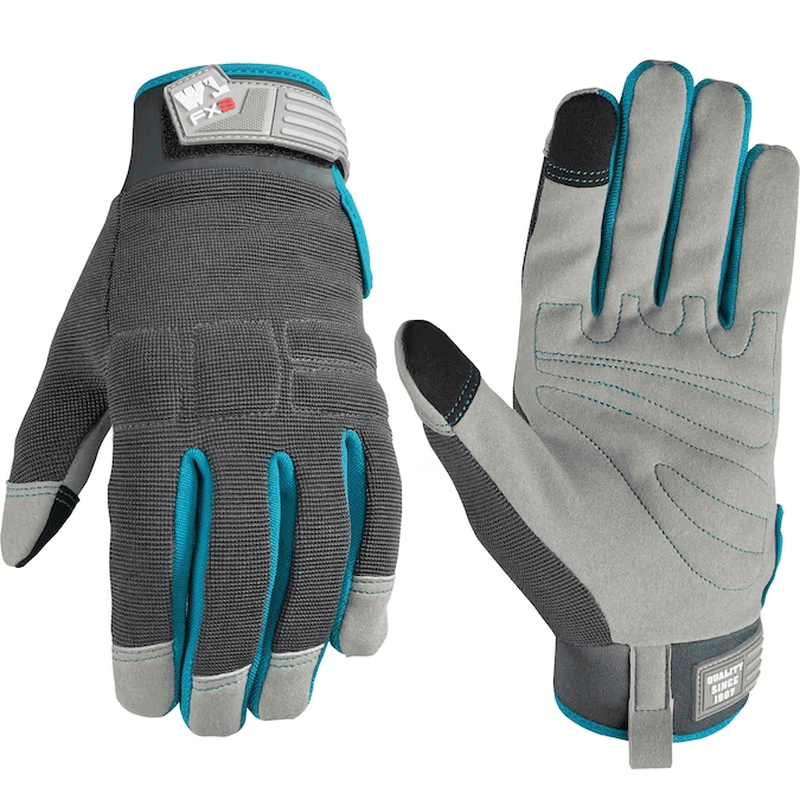 Equipped with a durable synthetic leather palm and a flexible spandex back. The lightly padded knuckles and palm create an additional layer of protection while you work. To create a comfortable, customized fit, we’ve outfitted these gloves with a neoprene wrist band and an adjustable Velcro closure. The thumb and first fingertips of each glove are touchscreen compatible, keeping you connected while you work. Once you’re finished with your gloves for the day, use the handy hanger tab to air them out or clip them together for future use.