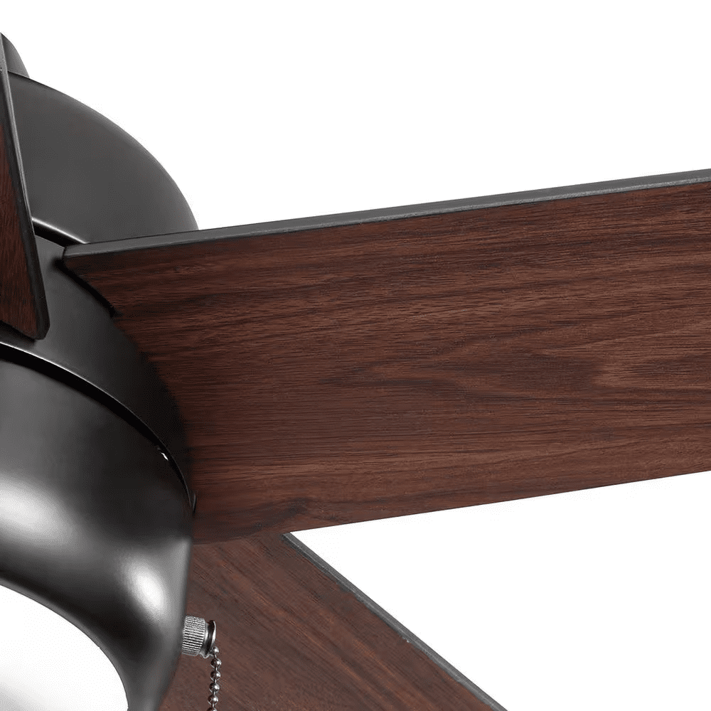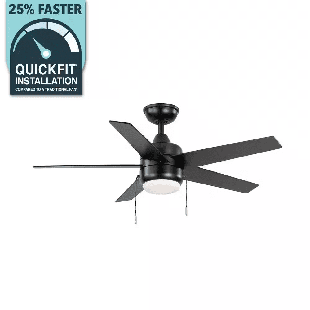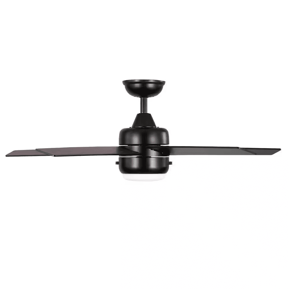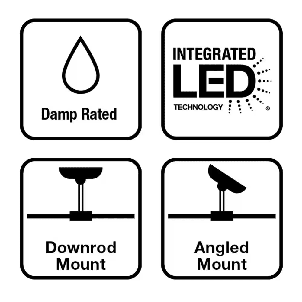Add comfort and style to smaller spaces, indoors or out, with the Hampton Bay Mena 44 in. Damp-Rated Ceiling Fan. Its compact size is perfect for bedrooms, offices, or covered patios and porches, while the durable damp rating ensures dependable performance. This fan features a modern matte black finish and 5- reversible blades offering both Matte Black and Caramel Mahogany looks to match your decor. The integrated LED light kit provides efficient 3000K soft white illumination. Simple pull chains control the 3-speed, reversible motor for year-round comfort and reliability. Remote control and wall control adaptable for future convenience (sold separately).
