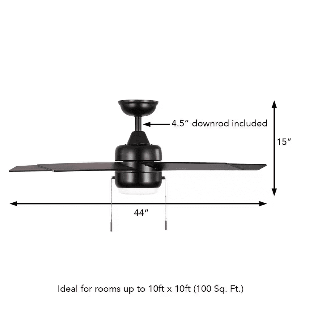 - Compact 44 in. fan ideal for bedrooms, offices, covered balconies