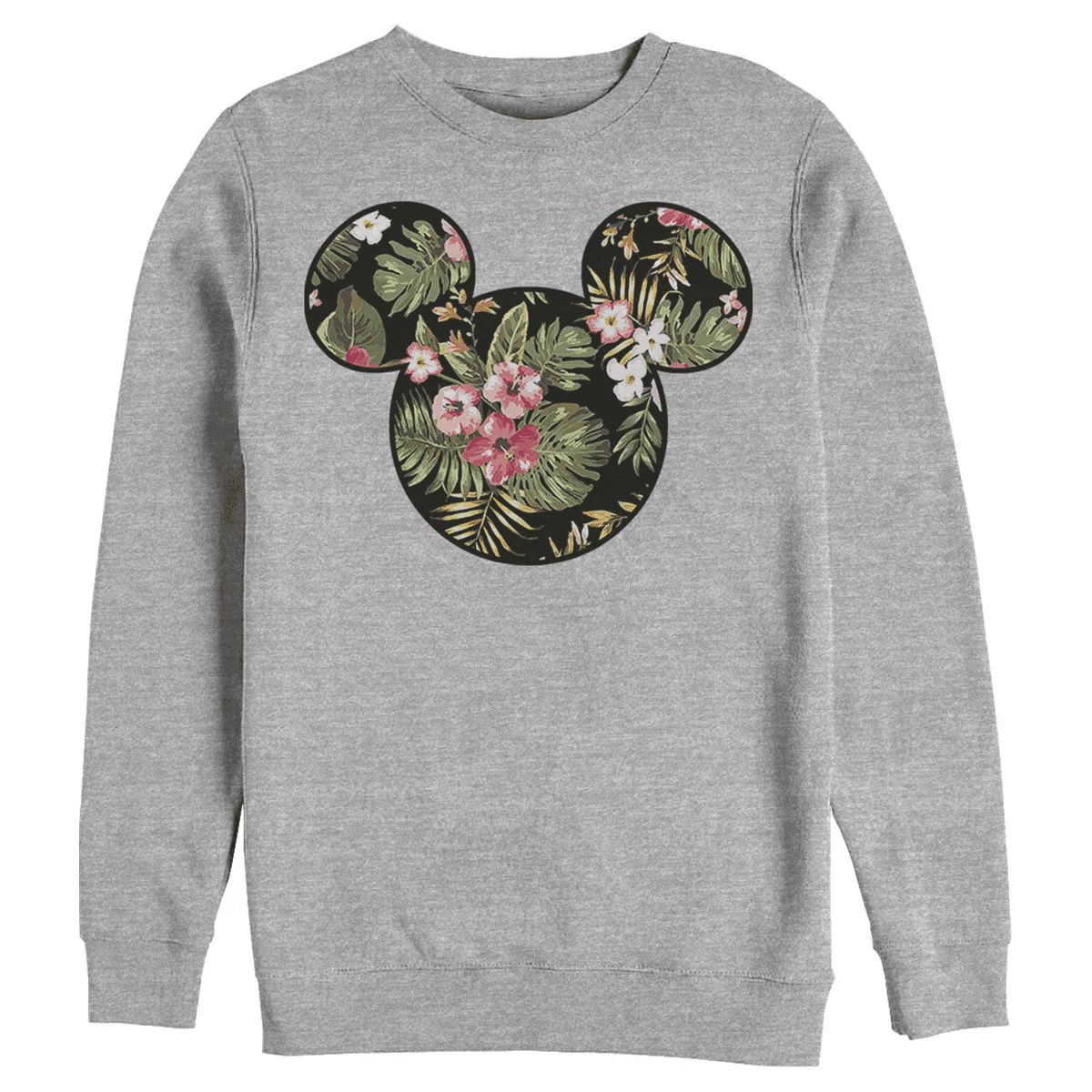 • Strut your stuff with this stylish new Men’s Crewneck Sweatshirt that is perfect for every occasion! Featuring a graphic of the Mickey Mouse silhouette logo across the front with tropical plants inside like Hibiscus and Plumeria flowers.