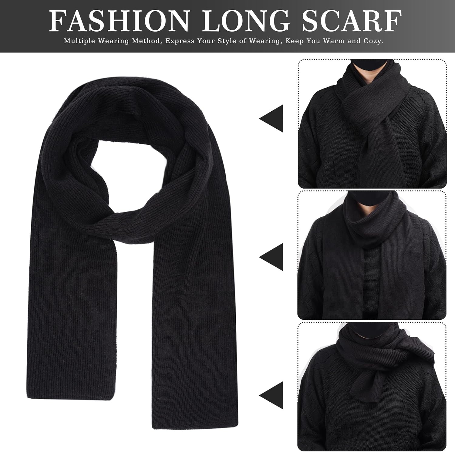Tightly woven and thick soft scarf will keep your neck warm. This long fashion scarf can be wound into the circle or two loops, creating a personalized style according to your preference.