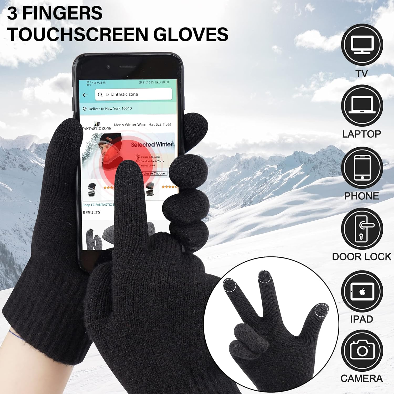 Simple yet high-end gloves not only keep your hands warm. The front of your thumb, index and middle fingers can work brilliantly on electronic devices like your smartphone or tablet screen.