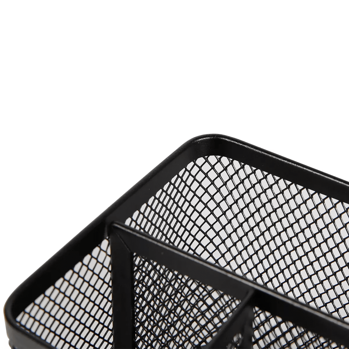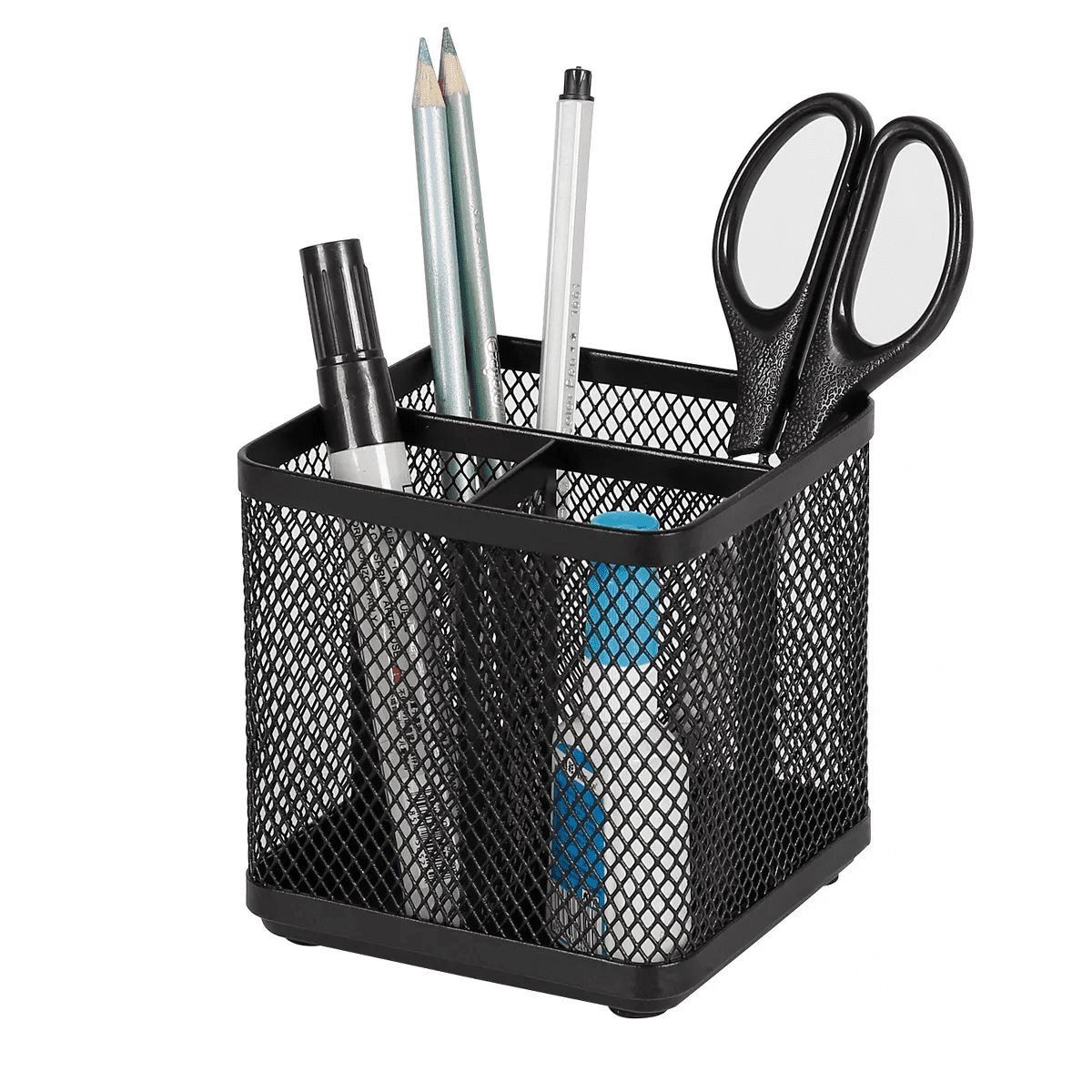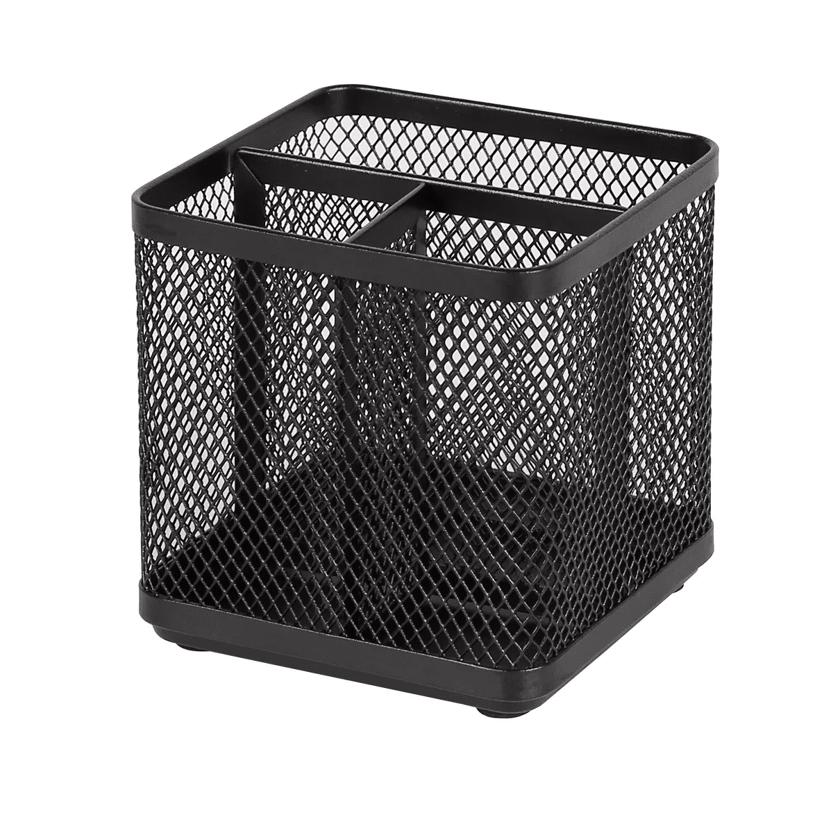Always have a writing utensil handy while keeping your desktop organized with this Mesh Pencil Holder from Brightroomâ„¢. This steel pencil holder features three divided compartments to help you easily organize pens, pencils, markers, scissors and other office supplies. Featuring a steel mesh construction with a black finish, this desktop pencil holder makes it easy to see and access the items inside. Use it on top of your desk to keep the surface clutter free, or place one in your kitchen or entryway to have everything you need to update shopping lists and more.