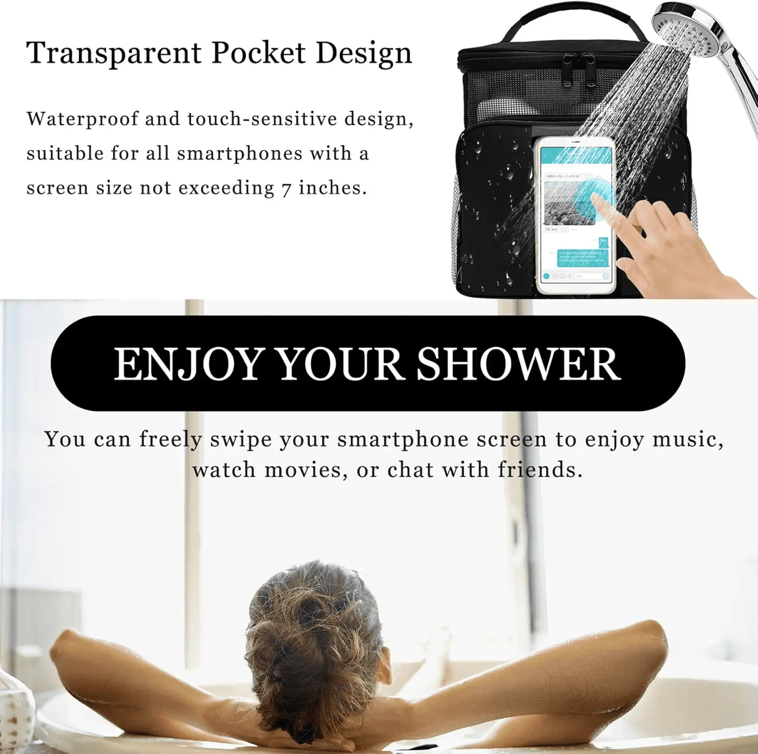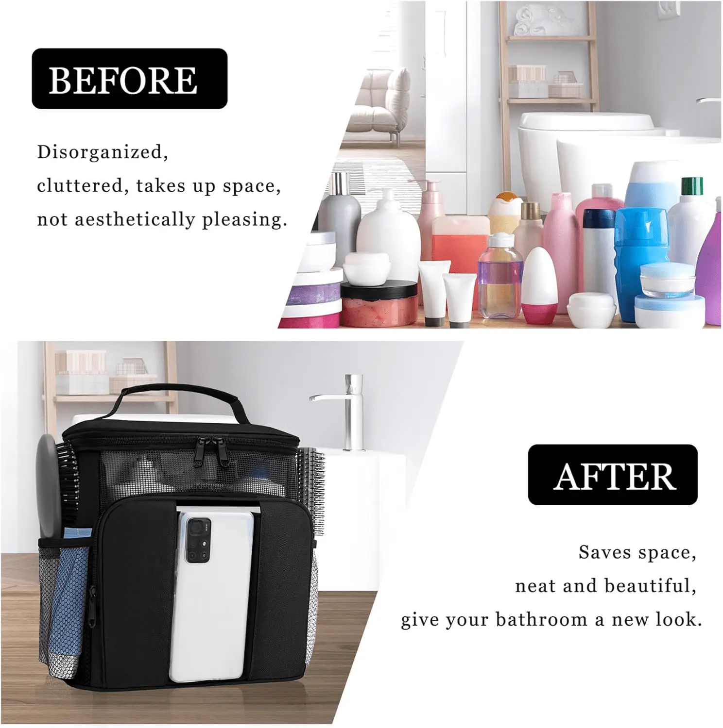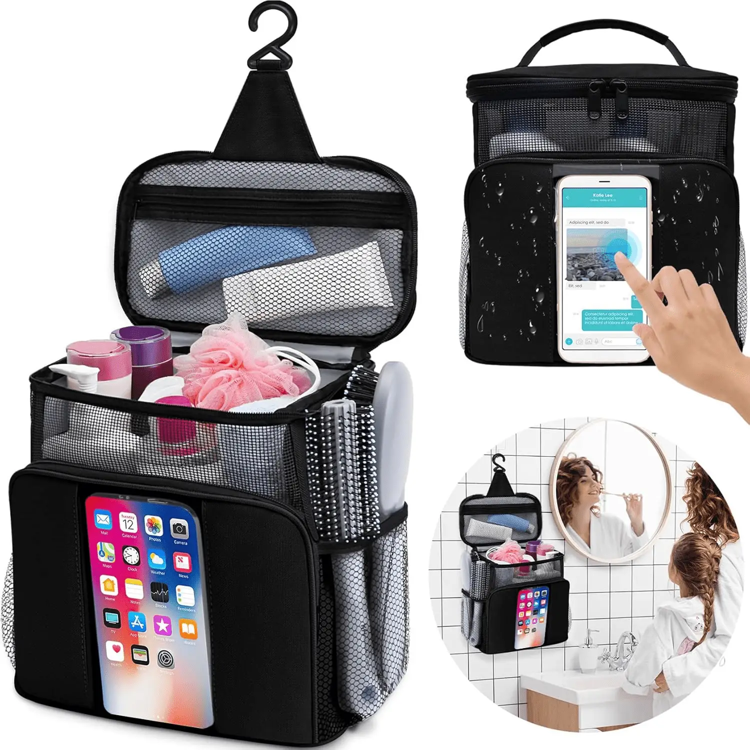 â‘¢Water-resistant toiletry bag for women men. Soft premium quality with durable polyester to with stand common bathroom spills. Shower caddy portable designed with 2 main compartments and 3 mesh pockets, a transparent pocket which you can play your phone with confidence when you are in the shower or bath. Large and lightweight toiletry bag is cruise ship essentials, travel essentials, cruise essentials.