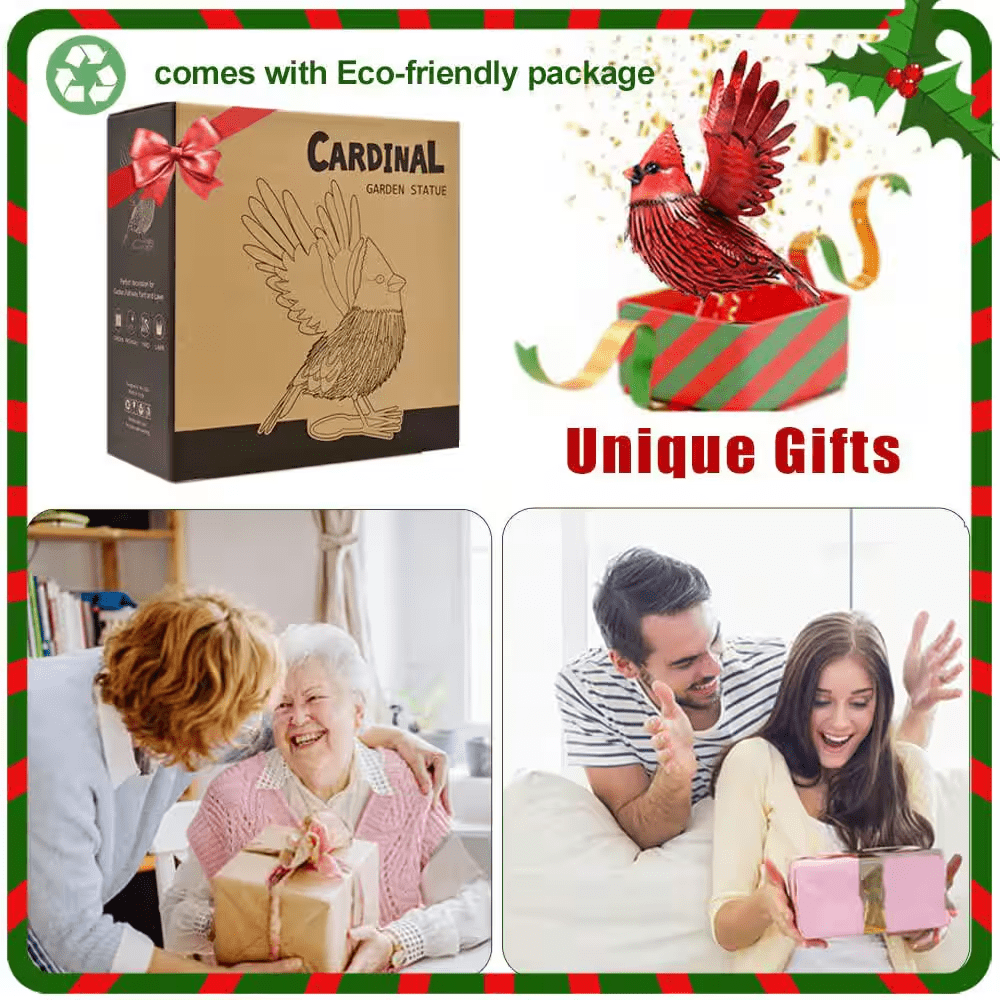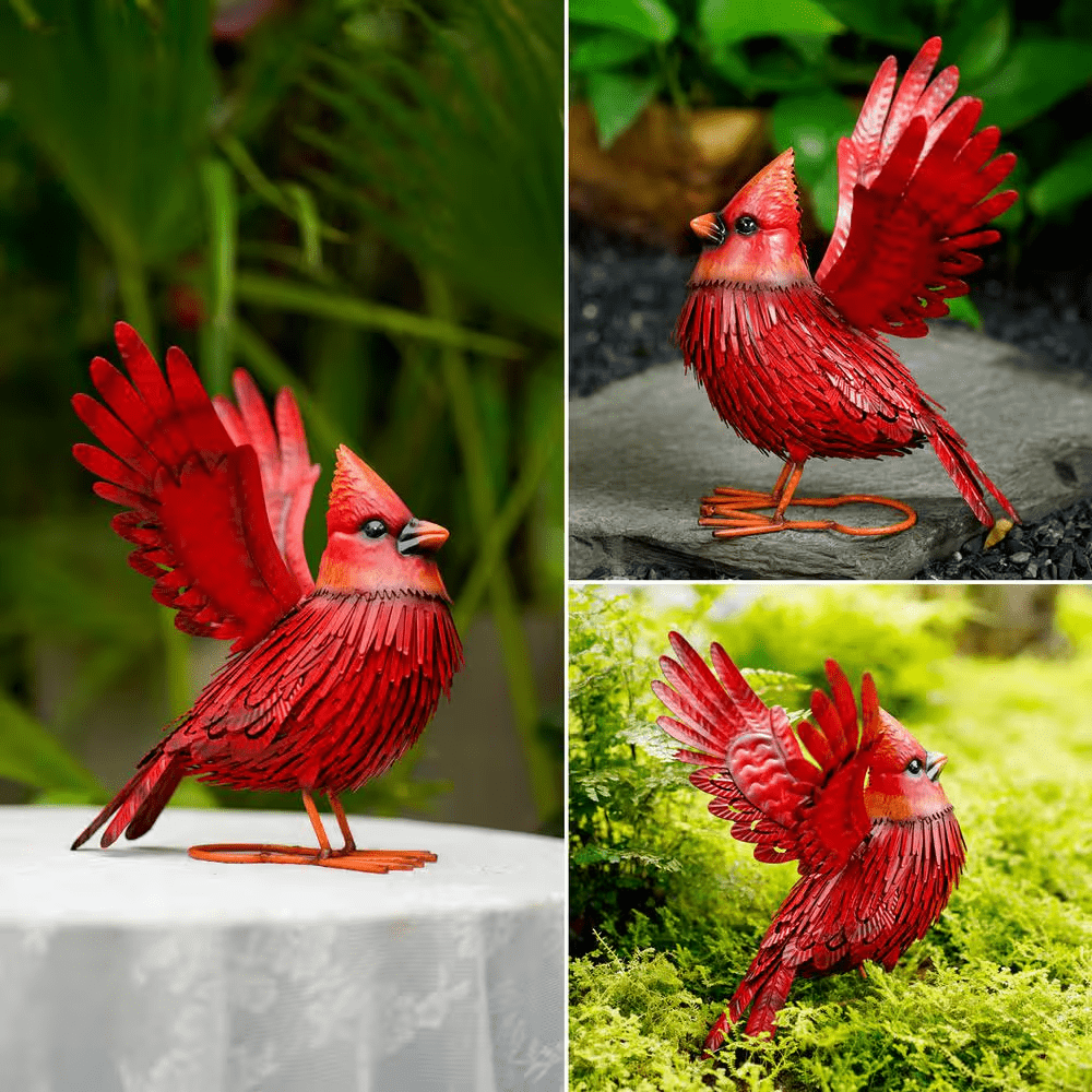 Goodeco Metal Bird Yard Art. Large Red Bird Outdoor Fall Decoration. Handmade Metal Garden Decor. Unique Realistic Designm Gift idea.