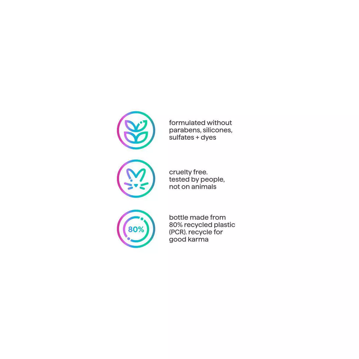 - Bottle (minus lid) made of 65% recycled plastic (PCR).