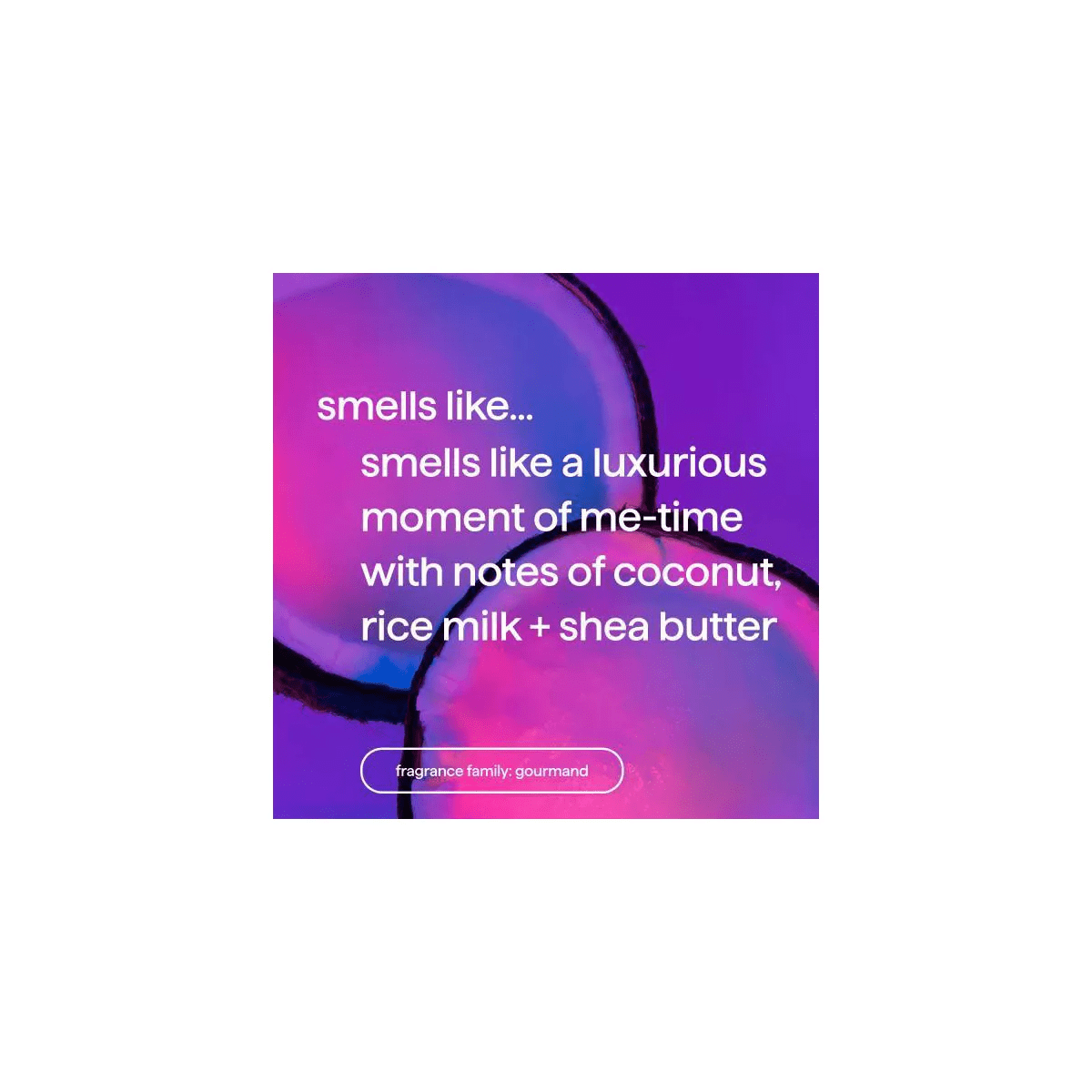 - Simply Nourish fragrance is infused with coconut, rice milk and shea butter and smells like a luxurious moment of me-time.