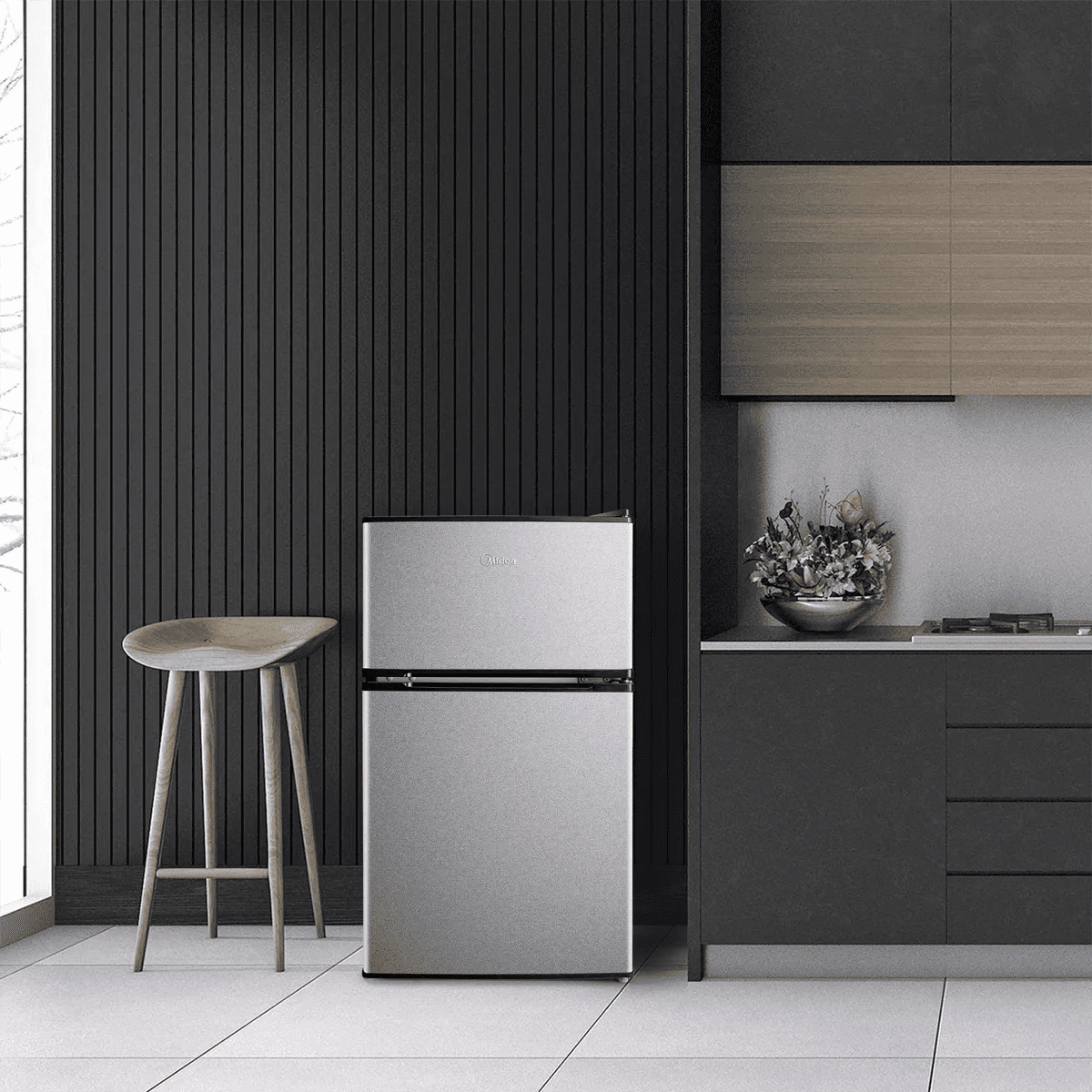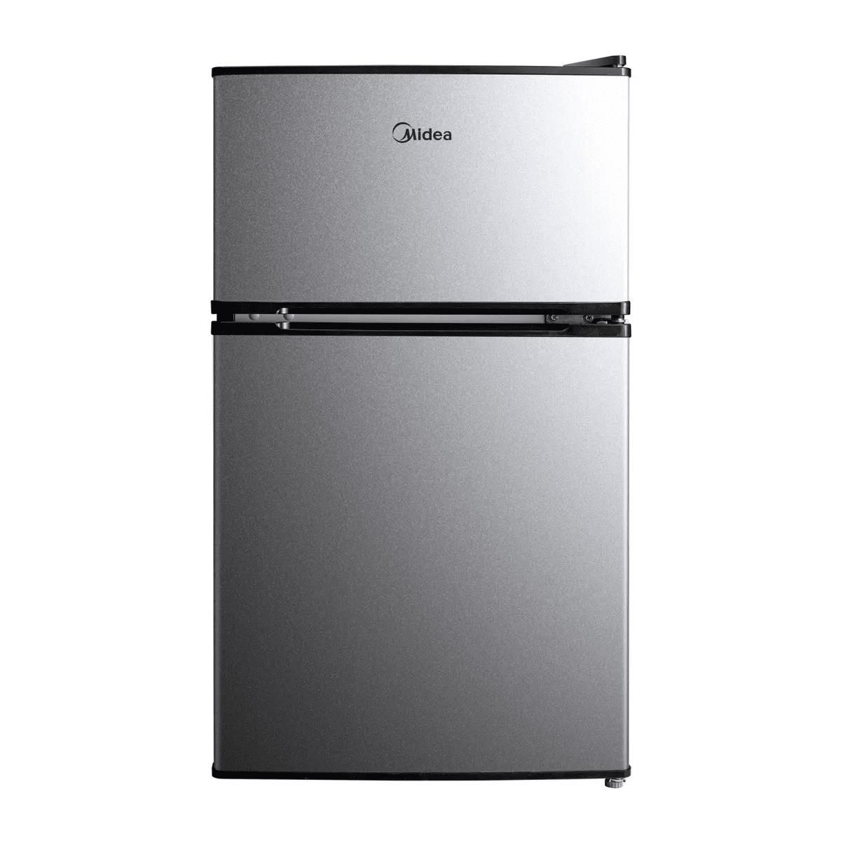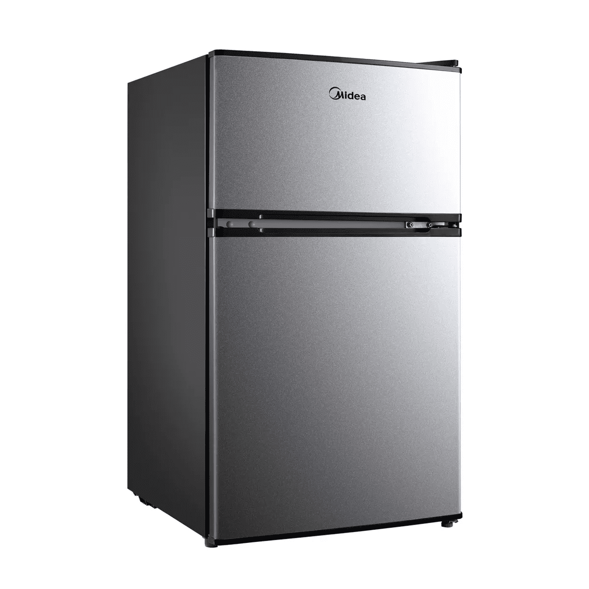 Whether you’re college-bound or simply want a little extra refrigerator space in your home, office, or break room, Midea’s 3.1 cu. ft. Stainless steel-look Single Door Mini Refrigerator offers the versatility you want with a minimalist design! A can dispenser conveniently located on the door makes beverages easy to access, while additional door shelves provide space for other frequently used items and a 2-liter sized bottle or carton. A clear pull-out crisper keeps food organized, and a separate freezer compartment provides storage for frozen items. Adjustable glass shelves allow you to create more space for taller items, and a bright interior light makes it easy to see what’s inside.