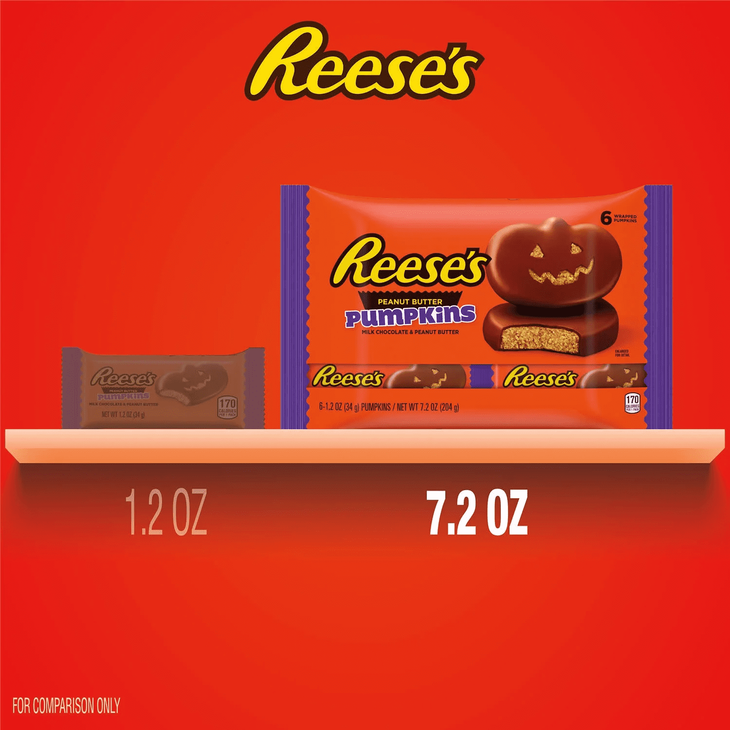 - Contains six (6) 1.2-ounce packs of REESE’S Milk Chocolate Peanut Butter Pumpkins Candy