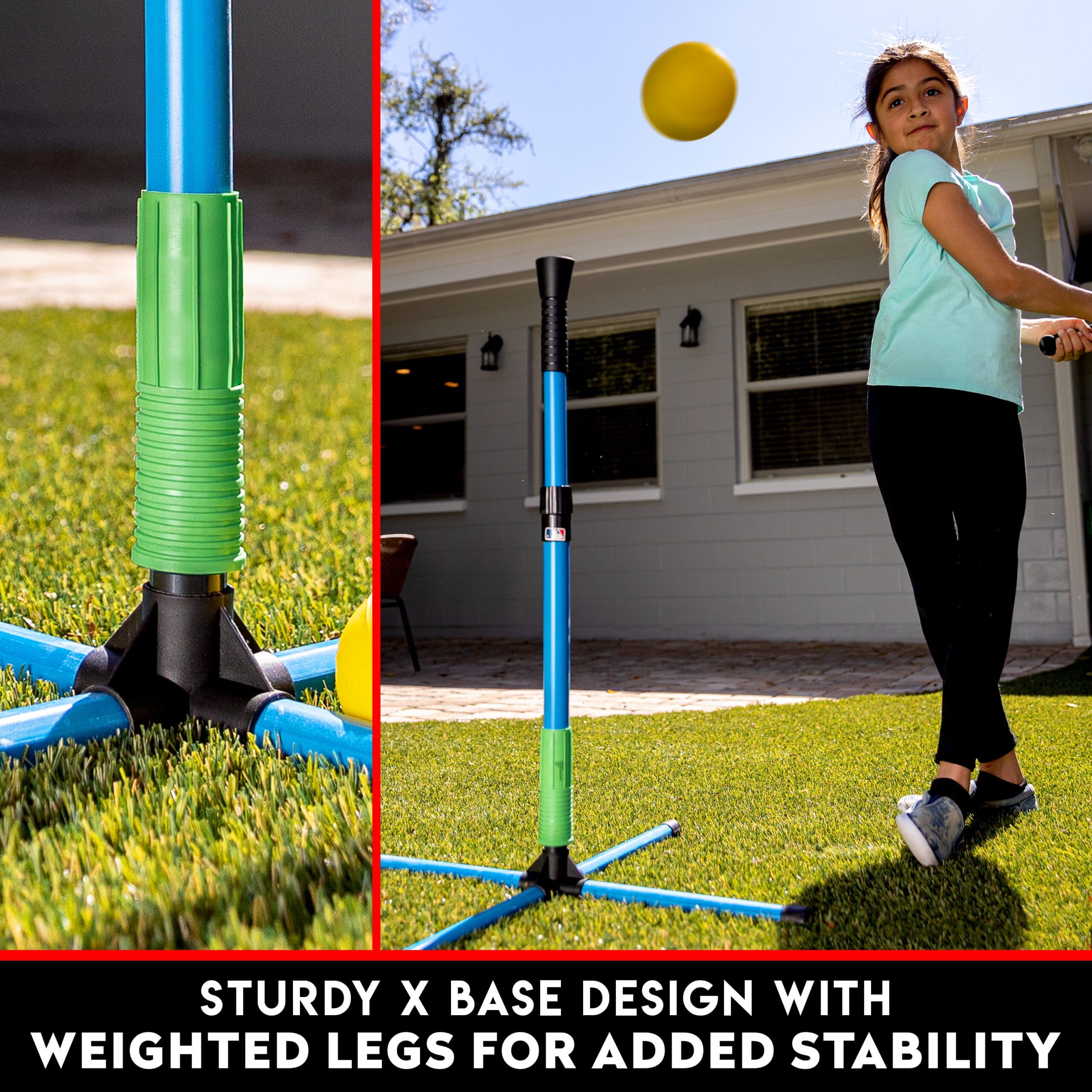 - STURDY DESIGN: The portable XT tee is constructed with a weighted “X”-style base for improved stability to prevent tipping on each swing
