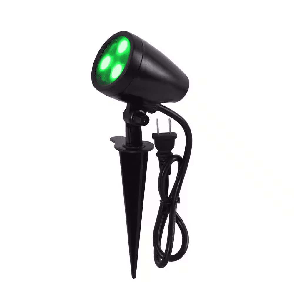 Commercial Electric LED Plastic Multi-Color Spike Light has the option for steady or strobe light feature. It is for everyday use and also prefect as festive holiday decoration light. The 3-Watt 250 Lumens (40-Watt) fixture luminate with 4-color choices -soft warm white light, Red, Green, Black light (Purple). Simply push the button at the back of the light for each pre-set function and it will stay at the selected settings until it gets alter again. Indoor and Outdoor Use.