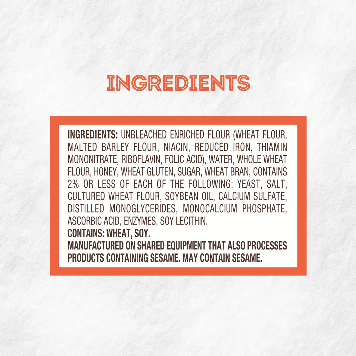 Taste the perfectly soft wheat bread sweetened with a touch of honey, and you’ll know why Nature’s Own® Honey Wheat Bread is the #1 selling loaf of bread in the United States.* Each slice of this sandwich bread contains no artificial preservatives, colors or flavors; no high fructose corn syrup; and no cholesterol. Plus, with 0 grams of trans fat per serving, Nature’s Own Honey Wheat is a low-fat food and the perfect sliced bread option for sandwich and toast recipes. Quickly put together a school lunch or plan an impromptu picnic, or you can pair this honey sweetened bread with your favorite deli meats or classic peanut butter and jelly. Pile on the goodness and bring everyone together with Nature’s Own breads, buns and rolls.