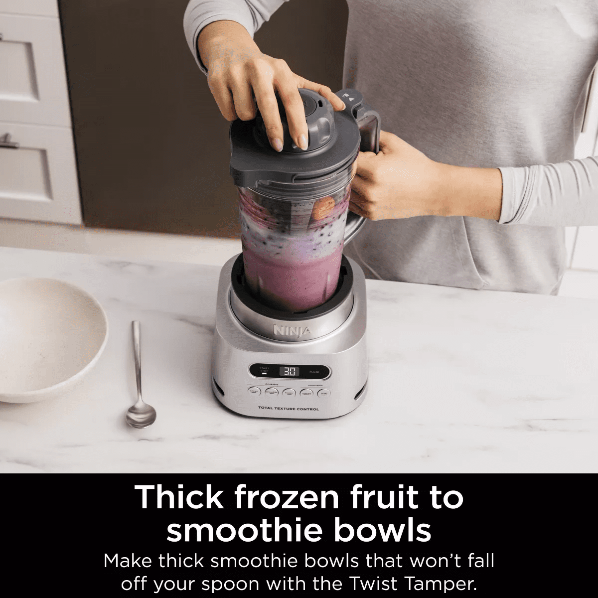 - Built-in Twist Tamper pushes ingredients down toward the high-speed blades
