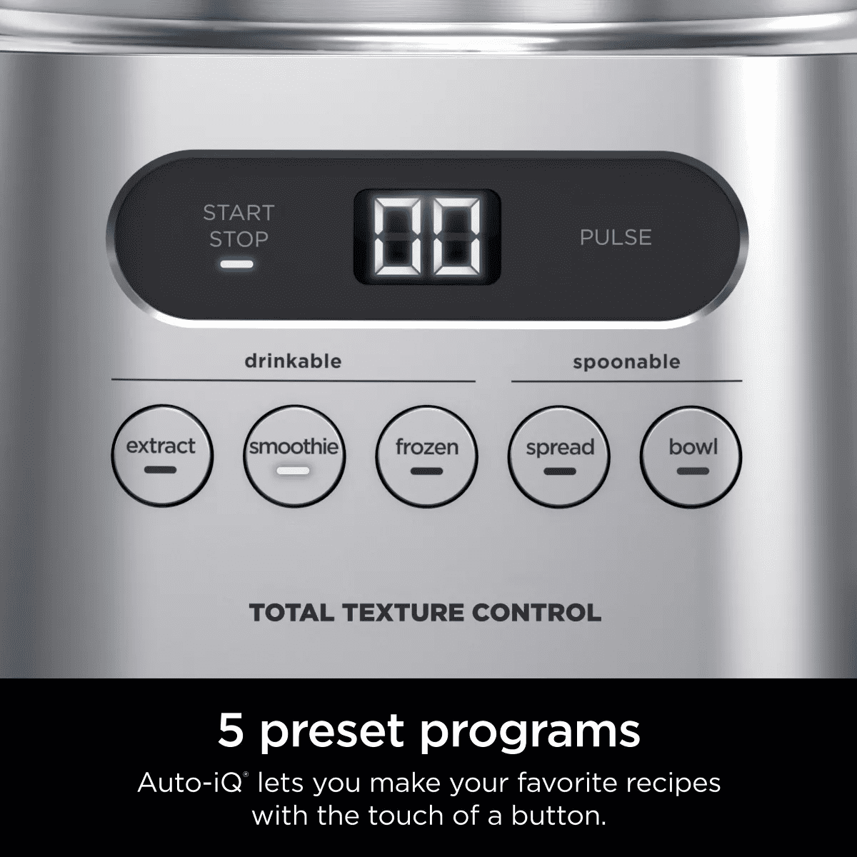 The Ninja® TWISTi™, High-Speed Blender DUO blender delivers the smoothest purees and finest blends of any Ninja pitcher with its built-in Twist Tamper, Hybrid-Edge™ high-speed blades, and a powerful motor. The Twist Tamper allows you to get super-thick spoonable results. 5 Preset Auto-iQ® programs help you create your favorite outputs with a touch of a button. Blend directly in your 18 oz. to-go cup for better ingredient breakdown. It comes with 10 delicious recipes for you to try. Clean up is easy with dishwasher-safe cups, blades, and lids.