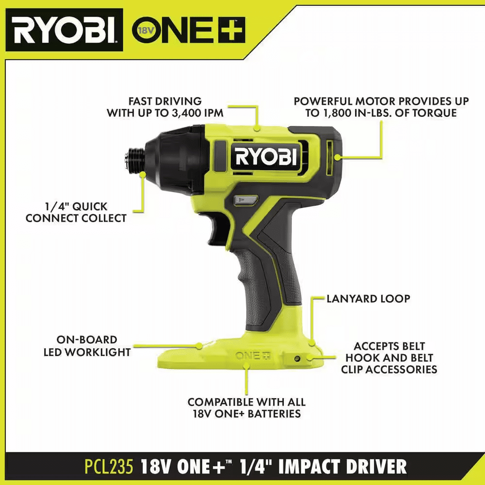 - Over 300 ONE+ Products – All Work With Any RYOBI ONE+ 18V Battery