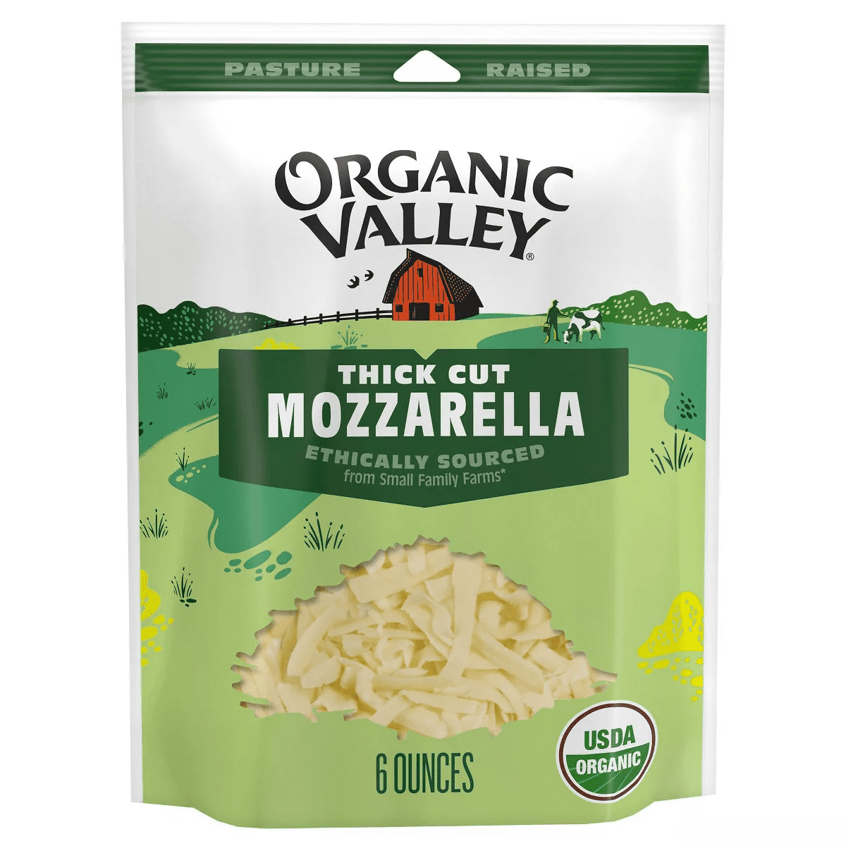 - 6 oz of Organic Valley® Organic Thick Cut Shredded Mozzarella Cheese