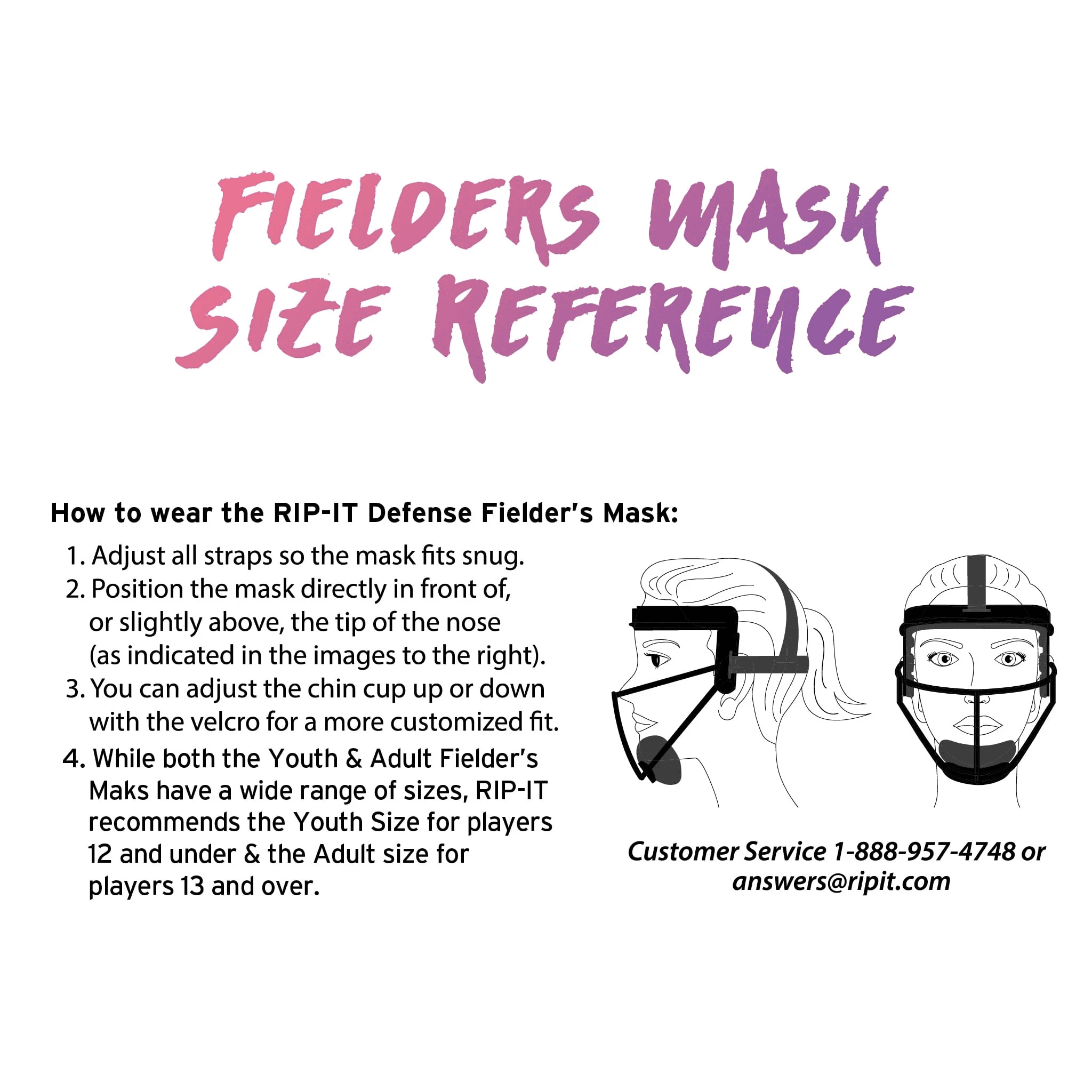 The RIP-IT Defense Fielder’s Mask is made to elevate your game and encourage aggressive fielding. Feel confident charging that ground ball and staying in front of that line drive. The RIP-IT Defense Fielder’s Mask features the largest viewable area of any fielder’s mask and is ergonomically designed for a secure fit with a ponytail-friendly Y-shaped head strap for comfort. Steel bars with a powder-coat finish create a lightweight frame with variable flex technology that transfers and reduces the force of impact giving you peace of mind and dramatically lowering the risk of injuries. The RIP-IT Defense Fielder’s Softball Mask includes side and forehead padding for a great fit with shock absorption and adjustable chin cup for optimal comfort.