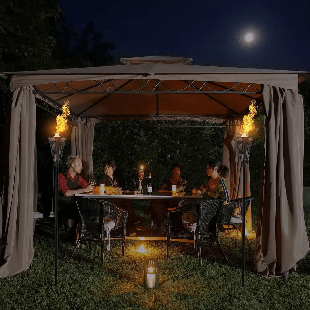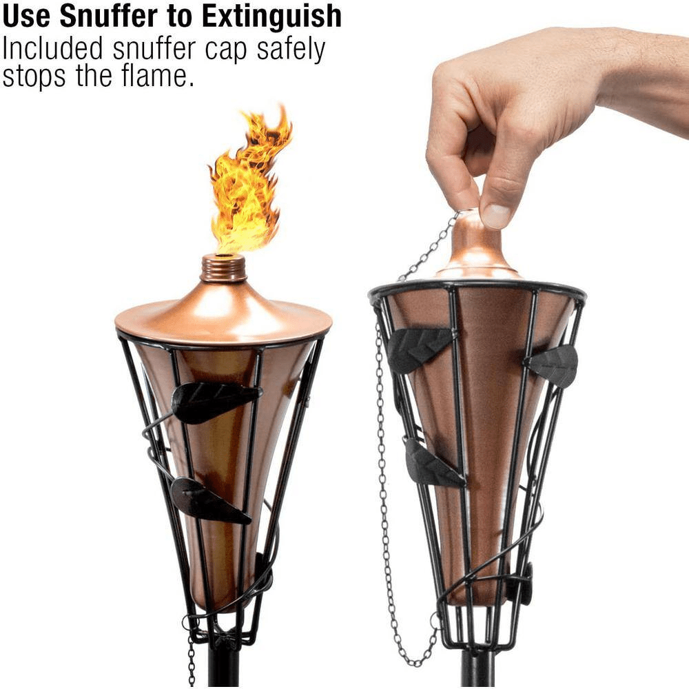- Outdoor metal patio torch with fiberglass wick and snuffer cap