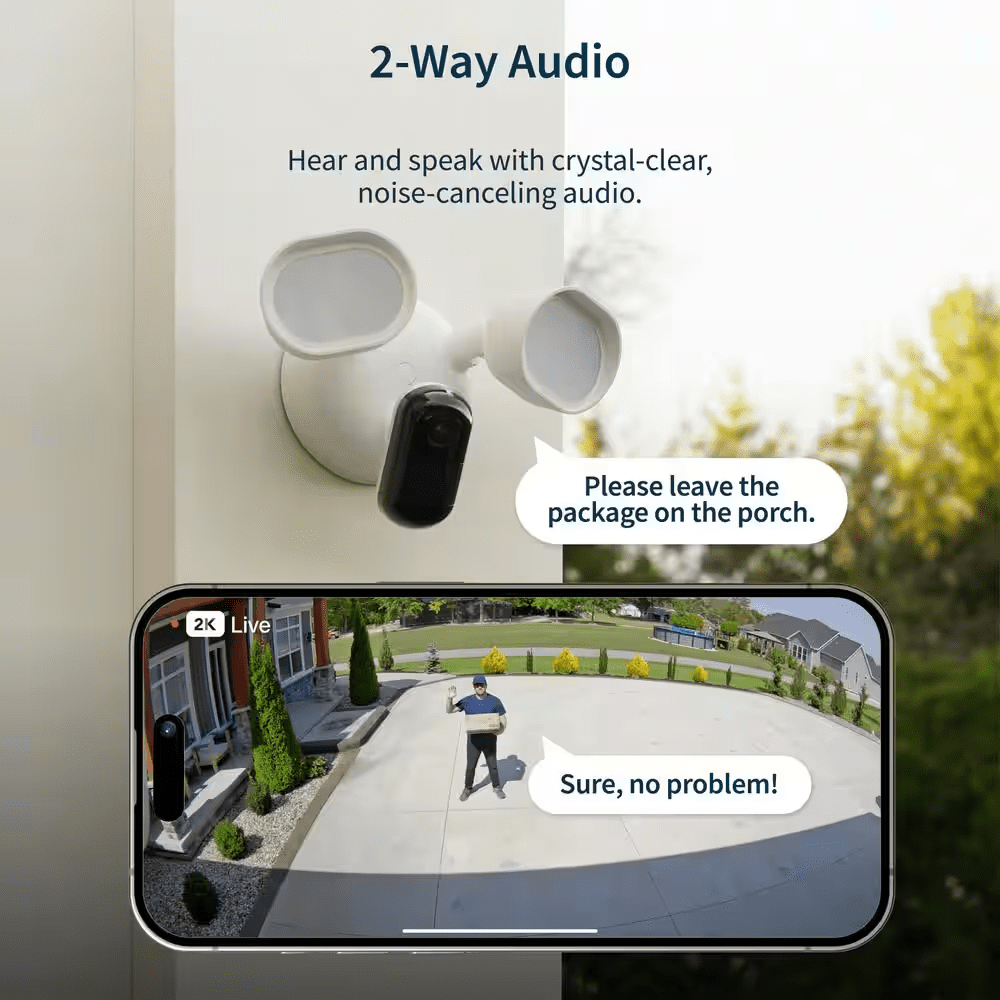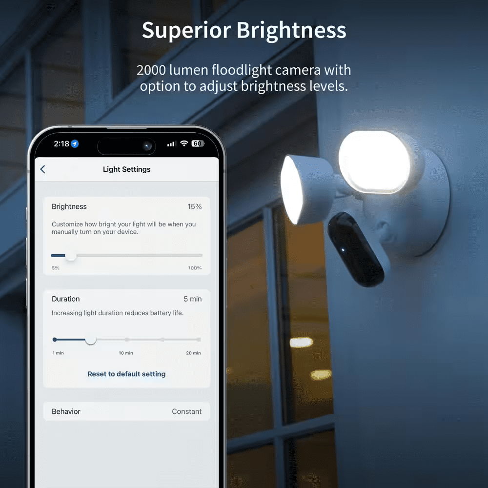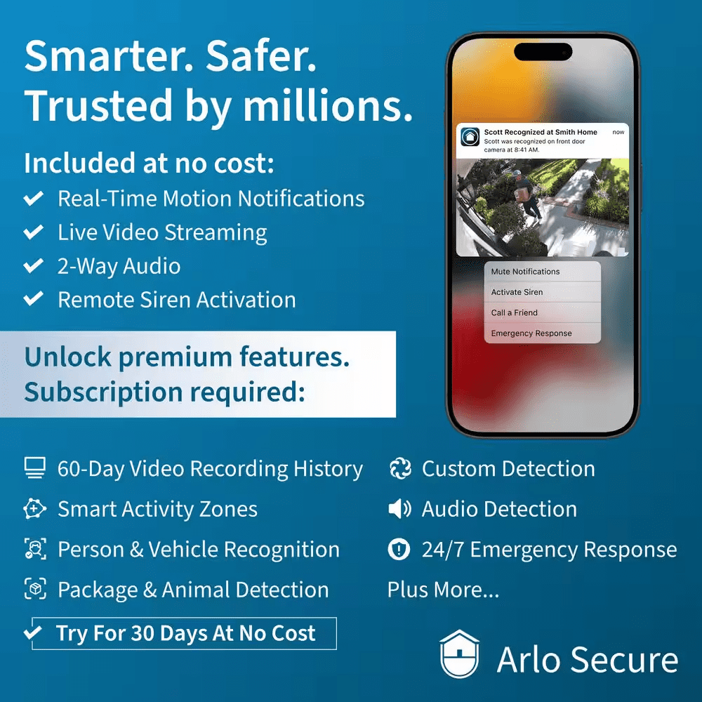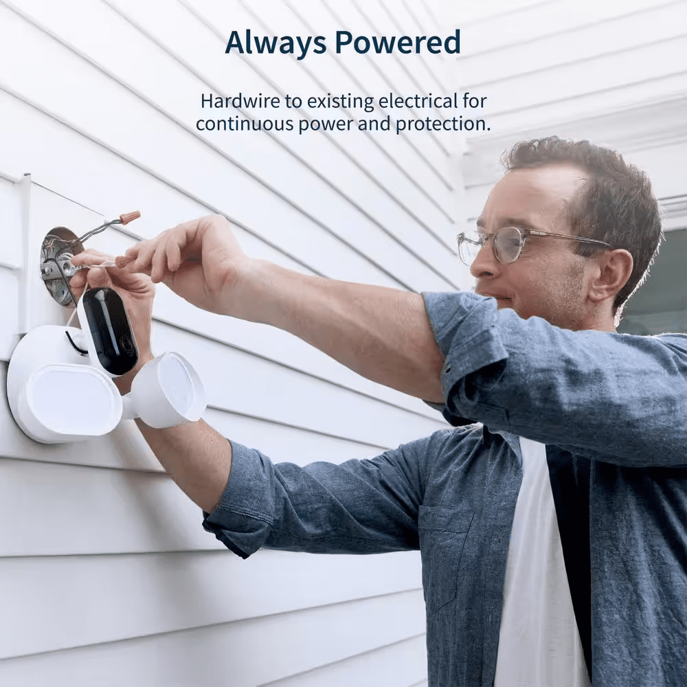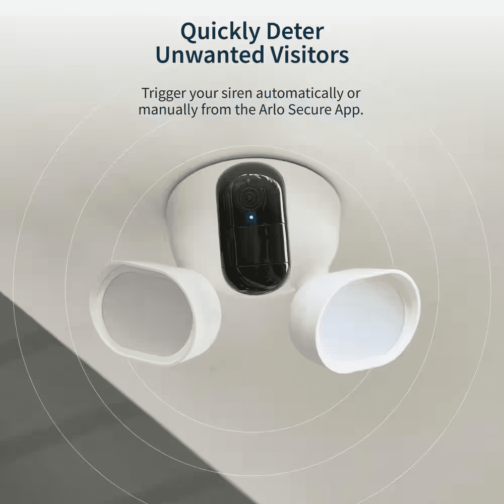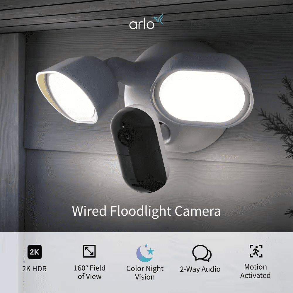 Brighten your security with 2000 lumens and 2K HDR. Protect your home with powerful light and view live or recorded clips from your phone. Capture clear video in low light with Color Night Vision, see more with a wide 160° Field of View, and trigger the Integrated Siren from the app. Easy, hardwired DIY installation gives you continuous power, protection, and zero charging. An Arlo Secure plan trial is included. After trial, a paid plan is required to keep premium features like 60-day video cloud storage, People, Package, Vehicle Detection, 24/7 Emergency Response, and more. This Arlo Secure service may require a paid subscription after the trial period, and some Arlo Secure services may be unavailable in certain regions. For current information on features that need a paid subscription. Wired Floodlight is now compatible with Arlo Base Station. Apple Home compatibility requires Arlo SmartHub.