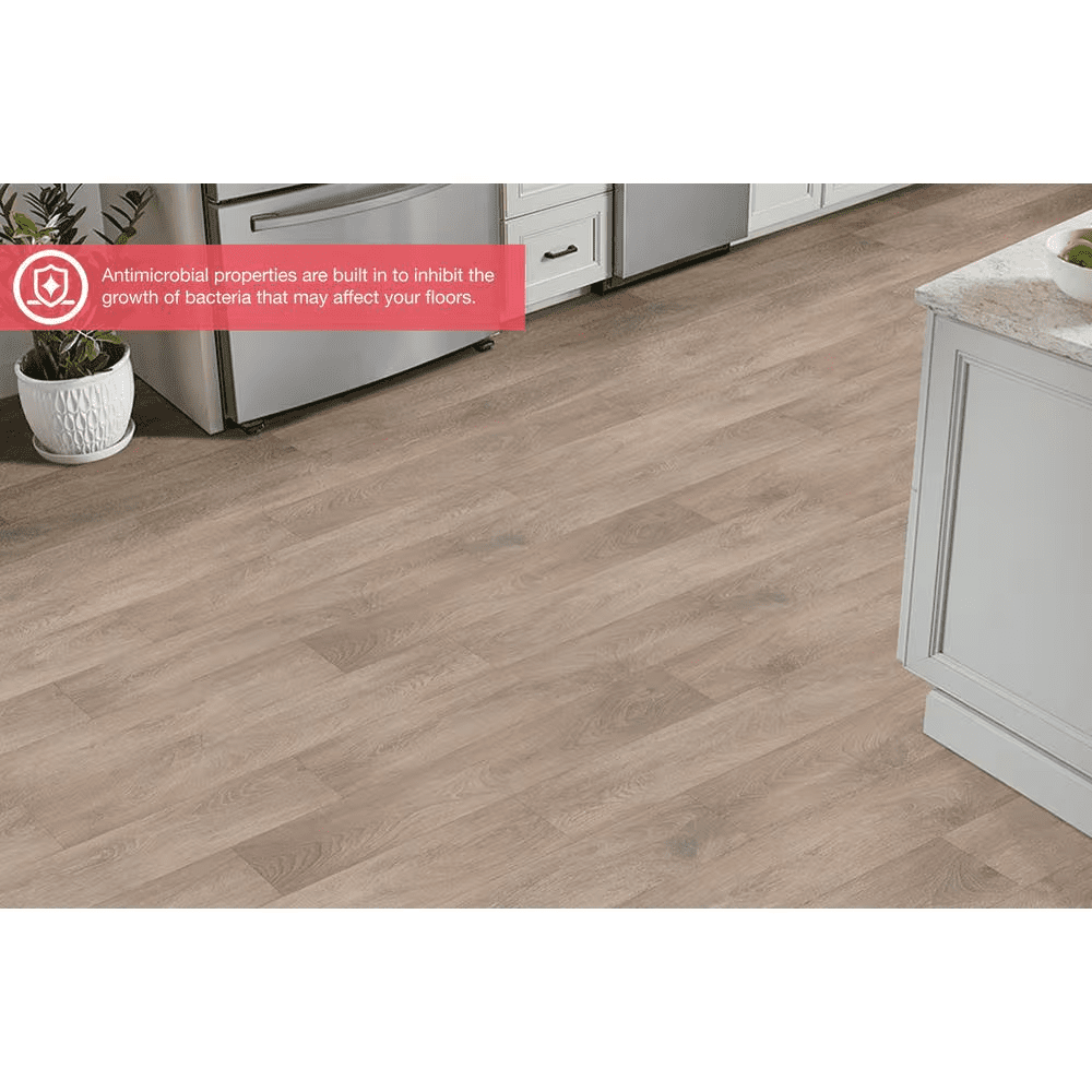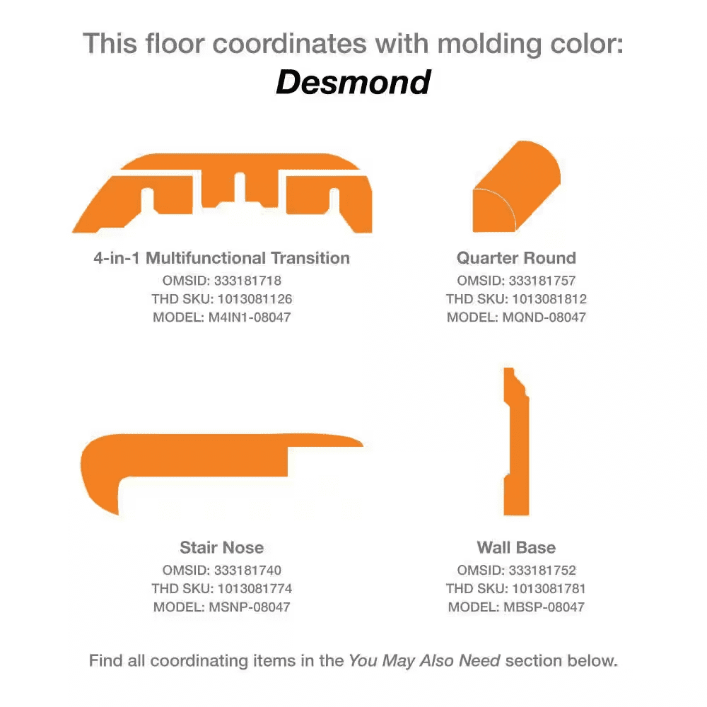 Now with a lifetime pet scratch warranty! Desmond Oak is a multi-tonal grey flooring with white accented highlights. This oak plank design is built with a milled bevel and complemented with a matte brushed texture creating a beautiful flooring for any room. Pergo Outlast+ is a waterproof antimicrobial-protected laminate wood flooring with an authentic look and feel. Antimicrobial properties are built in to inhibit the growth of bacteria that may affect your floors. The technology is built into every plank so it never washes or wears off. The fortified wood plank offers strength and stability with superior dent and stain resistance. Exclusive SpillProtect technology keeps liquids on the surface preventing spills from getting through and underneath. Pergo laminate floors are guaranteed not to wear through, stain or fade and maintenance is easy; just sweep or damp mop. For big messes, Pergo Outlast+ can be wet mopped. See warranty for complete details on water, scratch, stain and wear protection. Attached underlayment makes installation fast and easy, increases comfort underfoot and reduces sound transmission to rooms below. For even greater performance, install over Pergo FloorMate, the 2 in 1 underlayment with included moisture barrier. It’s the perfect companion for Pergo floors and the only underlayment approved for use under Pergo with attached pad. Coordinating moldings are available to finish your installation.